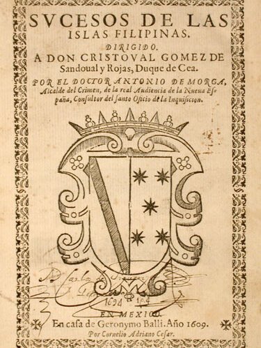 Sucesos de las Islas Filipinas, dirigidos a Don Christoval Gomez de Sandoval y Rojas, Duque de Cea. Por el Doctor Antonio de Morga, Alcalde del crimen de la Real Audiencia de la Nueva España, Consultor del Santo Officio de la Inquisición,