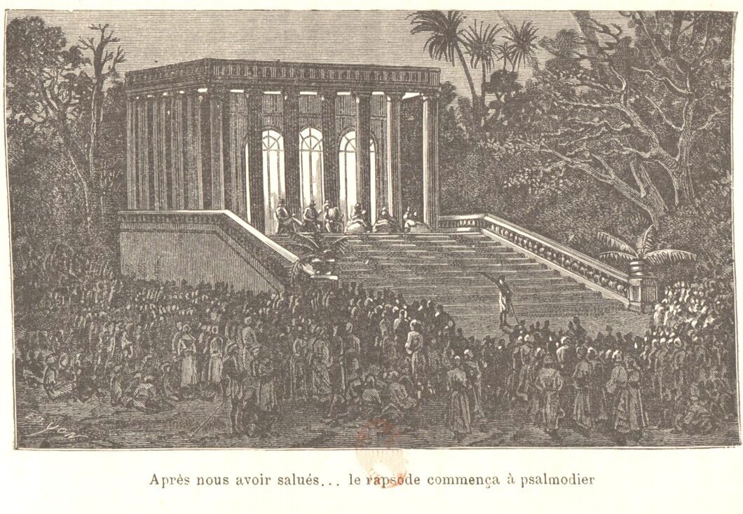 With his wife, Marguerite Faye (1839, Pondicherry, India ‑1884, Dinard, France) — they married in 1867 in Pondicherry, he traveled extensively across the Indian subcontinent and Ceylon [Sri Lanka], including a three-month boating trip on the Ganges River she recalled in her travelogue Trois mois sur le Gange et le Brahmapoutre (1875). They separated in the early 1870s and Marguerite Faye retired to Dinard where she had built for her one of the historic villas of the city, Villa India. Jacolliot went on to work in Tahiti. As he claimed several times, he had worked in Cambodia - in 1866, as indicated in Untrodden Fields of Anthropology (1896) — and in Saigon (then Cochinchina).