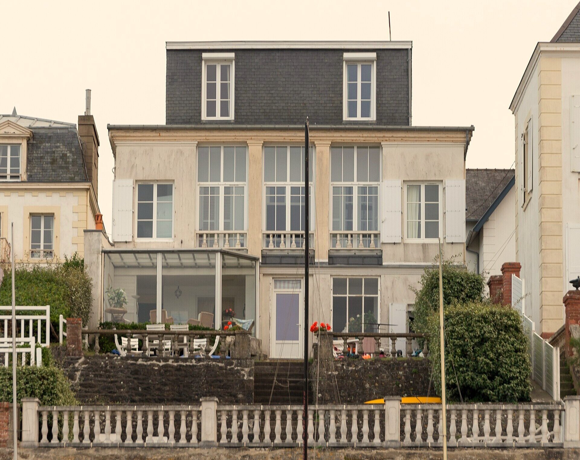 1) “After greeting us, the rhapsode began to chant”, scene on the banks of the Ganges [illustration by E. Yon in Marguerite Faye (Mme Louis Jacolliot), Trois mois sur le Gange…, op. cit.]. 2) Villa India on Saint-Enogat Beach Dinard, France [photo by Pymouss, Wikicommons, 2025].