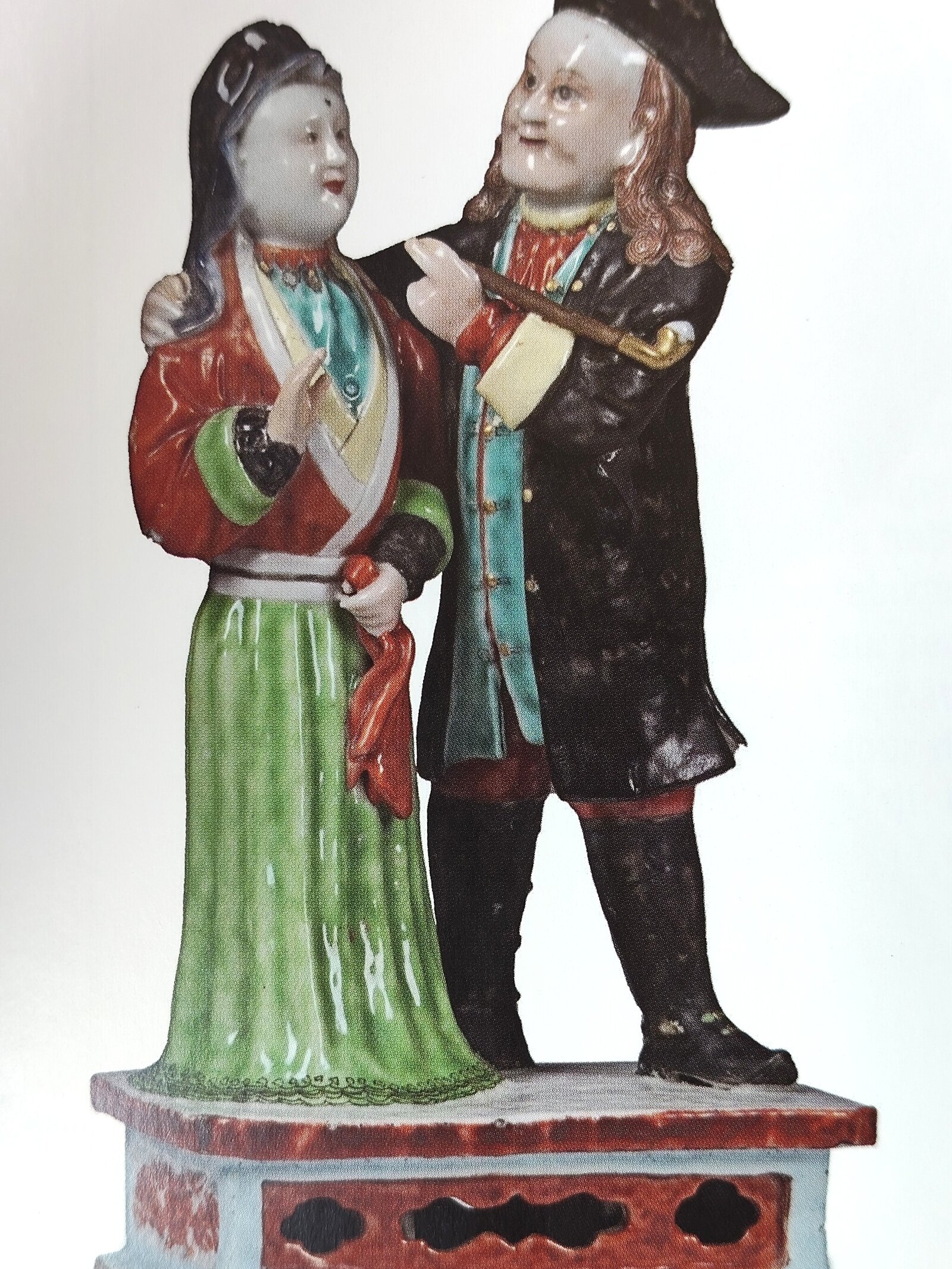 1) ‘European man and Asian woman’, Chinese porcelain, Jingdezhen, 23×12 cm, 1775 – 1780 [illustr. from Sexe, race et colonies, op. cit.]. 2) New York reprint of Untrodden fields…, cover page.