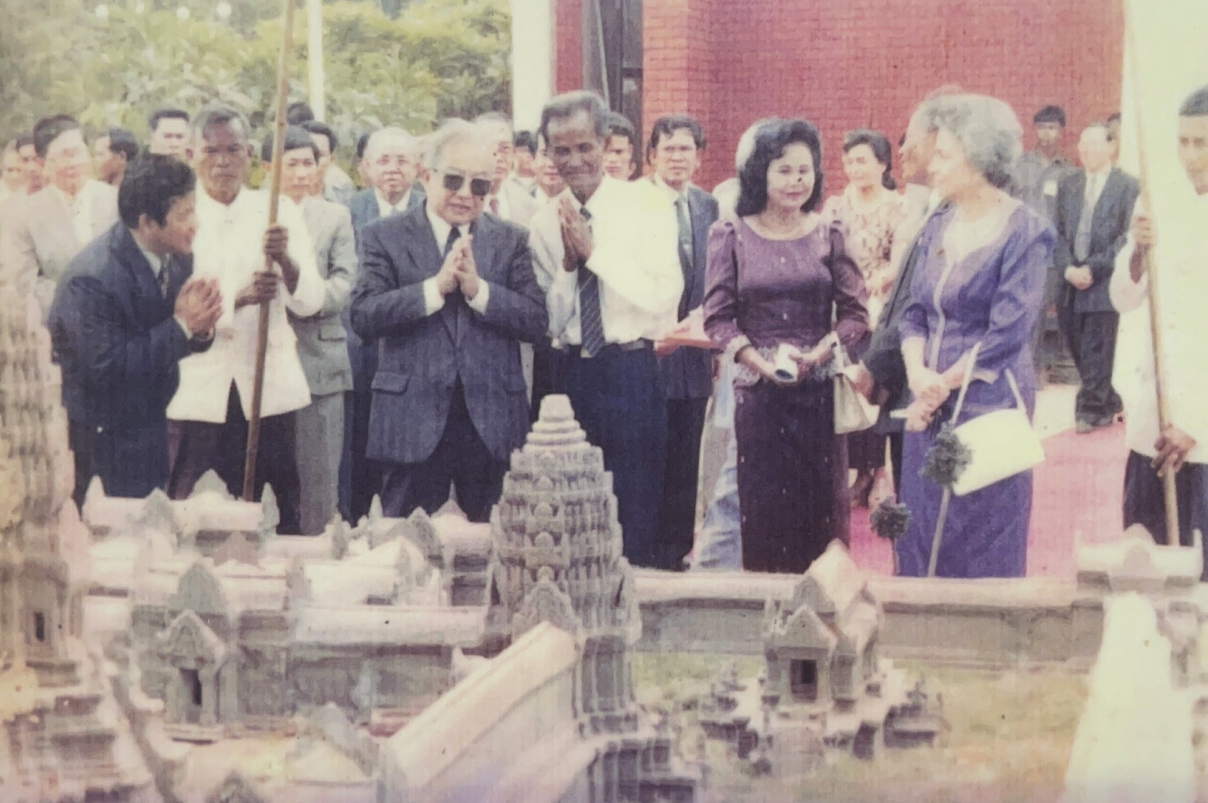 1995 was for him the year of consecration, as he was awarded the Ministry of Culture and Fine Arts ‘Pisnuloka’ Certificate and Trophy of Recognition for its contribution to the Arts. And as his work on cement replicas of Khmer temples had come to the attention of King Norodom Sihanouk, Dy Proeung presented the Cambodian sovereign with one of his models on his birthday in October, during a ceremony in Phnom Penh attended by the King, Prime Minister Hun Sen and their respective spouses.