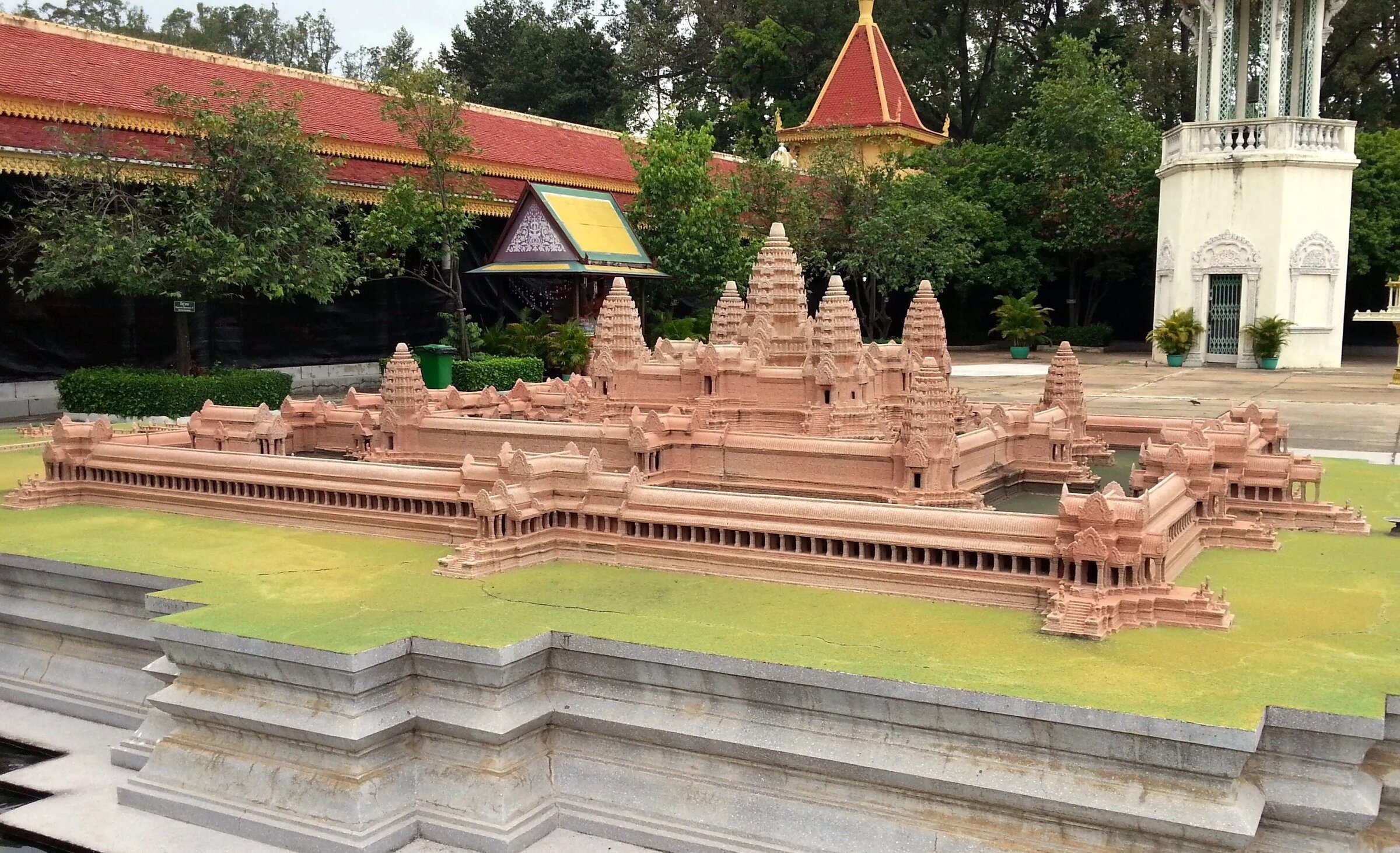 Dy Proeung ឌី ព្រឿង (16 June 1939, Kandal — 22 March 2020, Siem Reap) was a Cambodian architect and sculptor who worked as a draftsman for EFEO and Angkor Conservation from 1961 to 1975 and founded in 1994 the Miniature Replicas of Angkorian Temples រូបចម្លងខ្នាតតូចនៃប្រាសាទអង្គរ, a garden museum set at his house in Siem Reap with cement scale models of Angkor Wat, Bayon, Banteay Srei and Prasat Ta Keo [Built by Jayavarman V from the year 975CE, Ta Keo Temple ប្រាសាទតាកែវ is considered to be the first structure built entirely of sandstone in Cambodia.