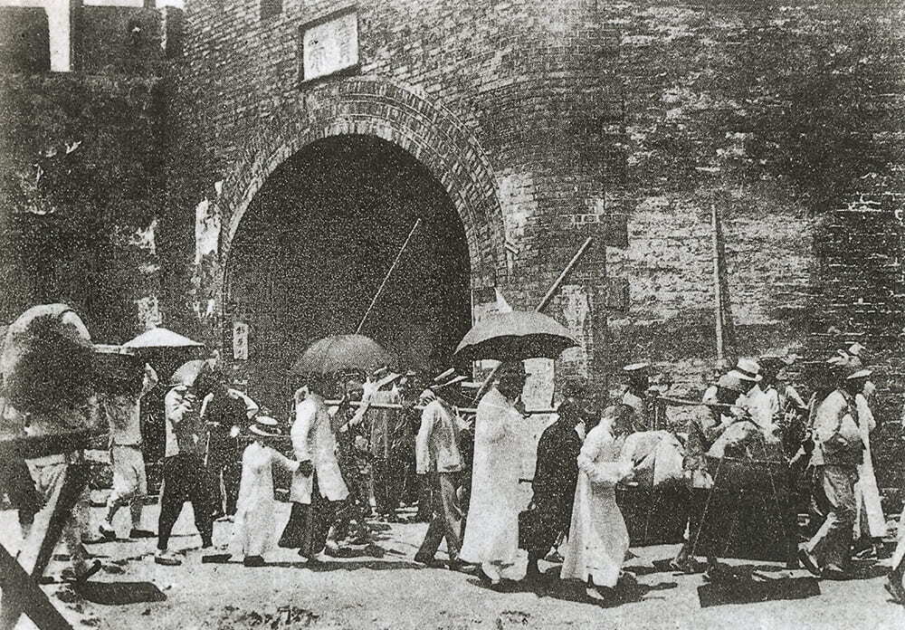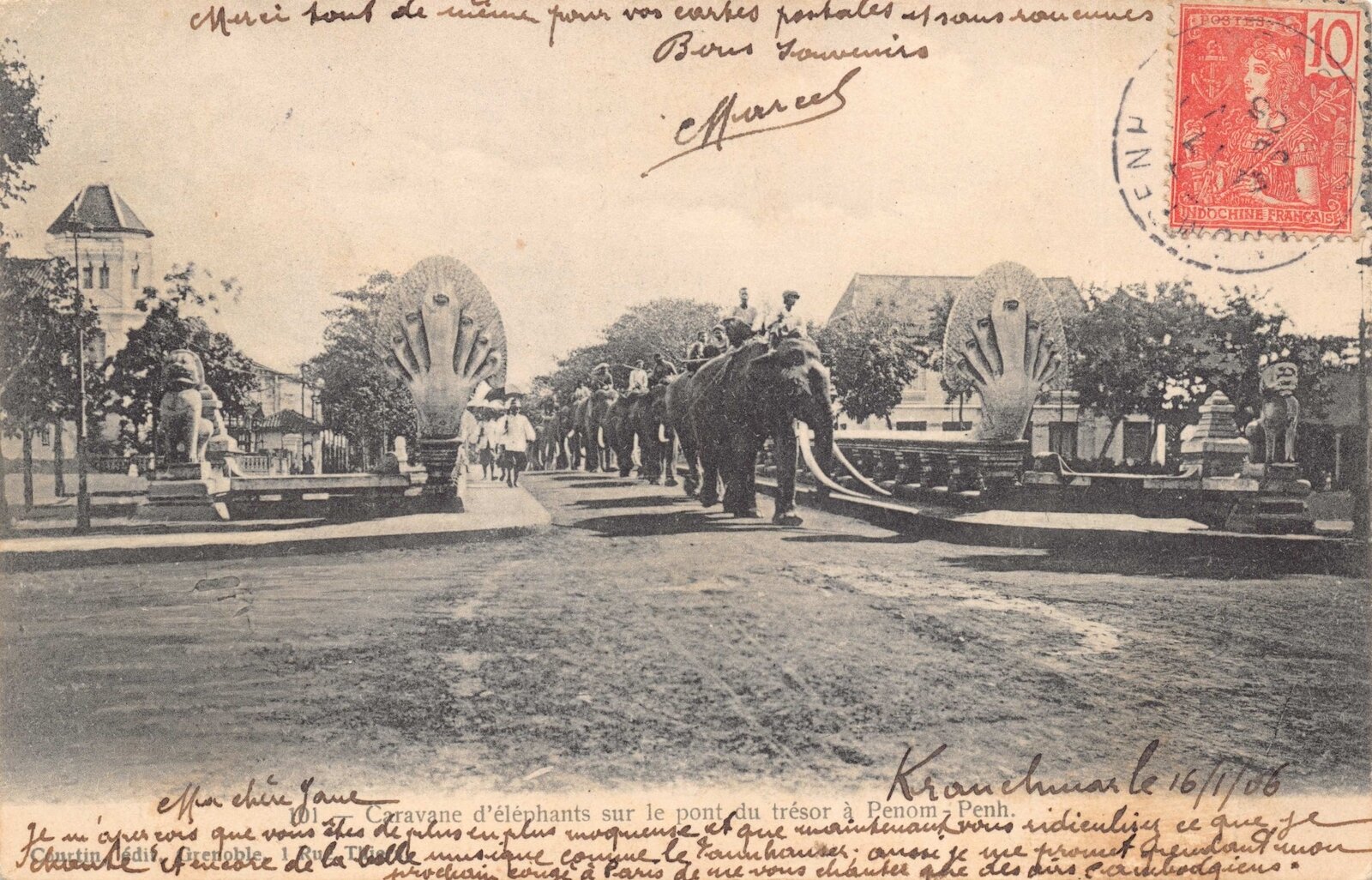 1) Shanghai, Little East Gate, circa 1910 [source: Shanghai Public Library, repr. by Katya Knyazeva on Historical Photographs of China (HPC), 29 Oct. 2020.] 2) “Caravan of Elephants on Treasure Bridge, Phnom Penh”, postcard ed. by Curtin Ed. in 1906, two years before Hugo Suter’s visit to Cambodia.