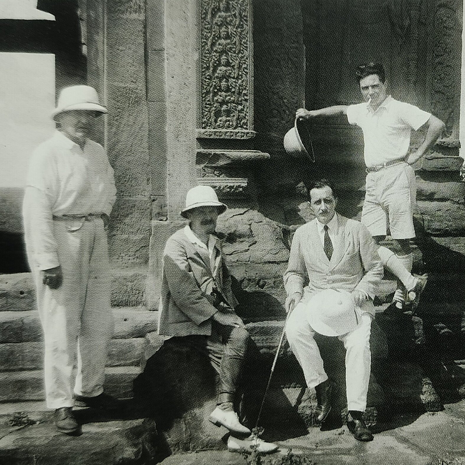 1) Paul Pelliot at work in Cave 17 at Dunhuang site in 1908 [source: Musée Guimet, AP8187] From left to right, Victor Goloubew, Henri Marchal, Paul Pelliot and Georges Trouvé in front of Prasat Bakheng, 1931 [photo EFEO].
