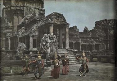 1) A view of Angkor Wat with dancers by W. Robert Moore, 1931. 2) Royal Ballet dancers in Angkor, 1931, by W. Robert Moore.