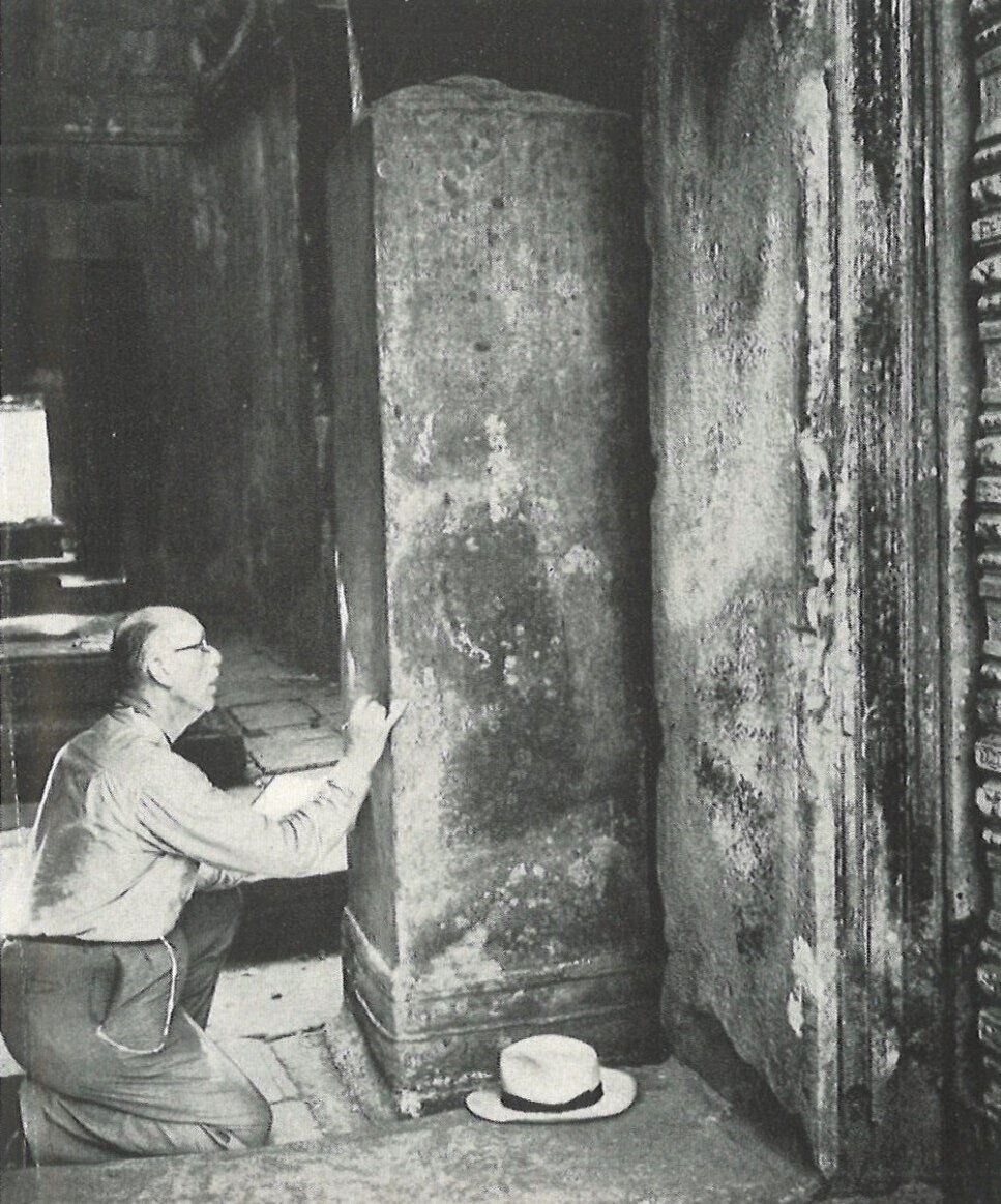 1) Kwangtung (Hong Kong) in 1932, by W. Robert Moore. 2) W. R. Moore examining an inscription at Preah Khan while working on his Angkor feature (along with Maurice Fievet’s illustrations 7in National Geographic, April 1960.