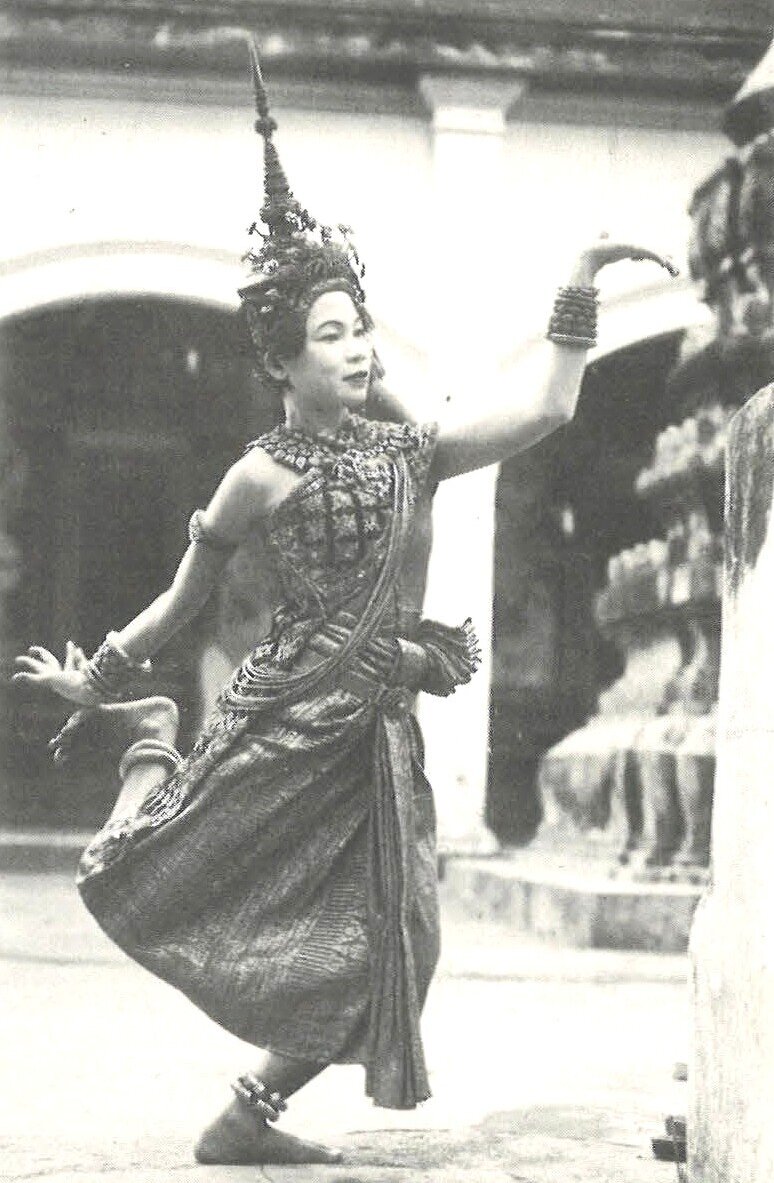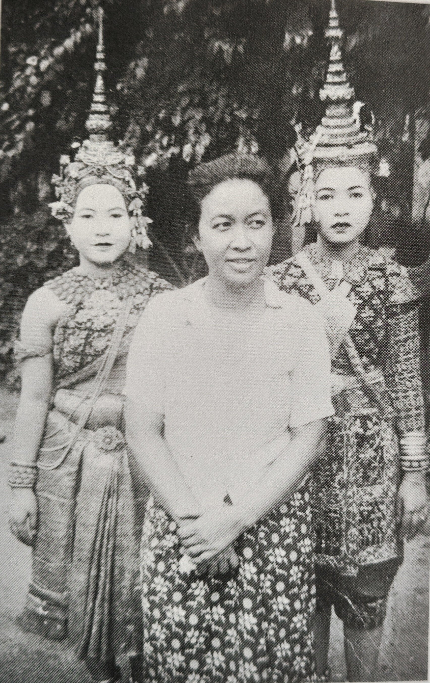 In 1937George Groslier was director of the lovely Albert Sarraut Museum at Pnompenh. A distinguished artist, painter, writer, and connoisseur of Cambodian arts who has done invaluable work for Cambodia, M. Groslier has also written and illustrated a splendid book, Danseuses Cambodgiennes. He arranged for me to have lessons with Princess Say Sang Van [or Sangvann], the favorite dancer in the Royal Ballet. She was married to the brother of the King of Cambodia, but after domestic disagreements, she left the court. The French Colonial Government had for some time been in an embarrassing position: the fame and beauty of the Cambodian dances had spread to Europe, and now distinguished visitors came to visit Cambodia and wanted to see the dances. They had made a long and difficult journey, and the Cambodian dancers were a strong drawing card. The French Colonial Government could not ask the King to produce the Royal Ballet, which was part of his royal household, just to please strangers he had never heard of. So the visitors most often had to leave Cambodia disappointed in their hope of seeing the Cambodian ballet.