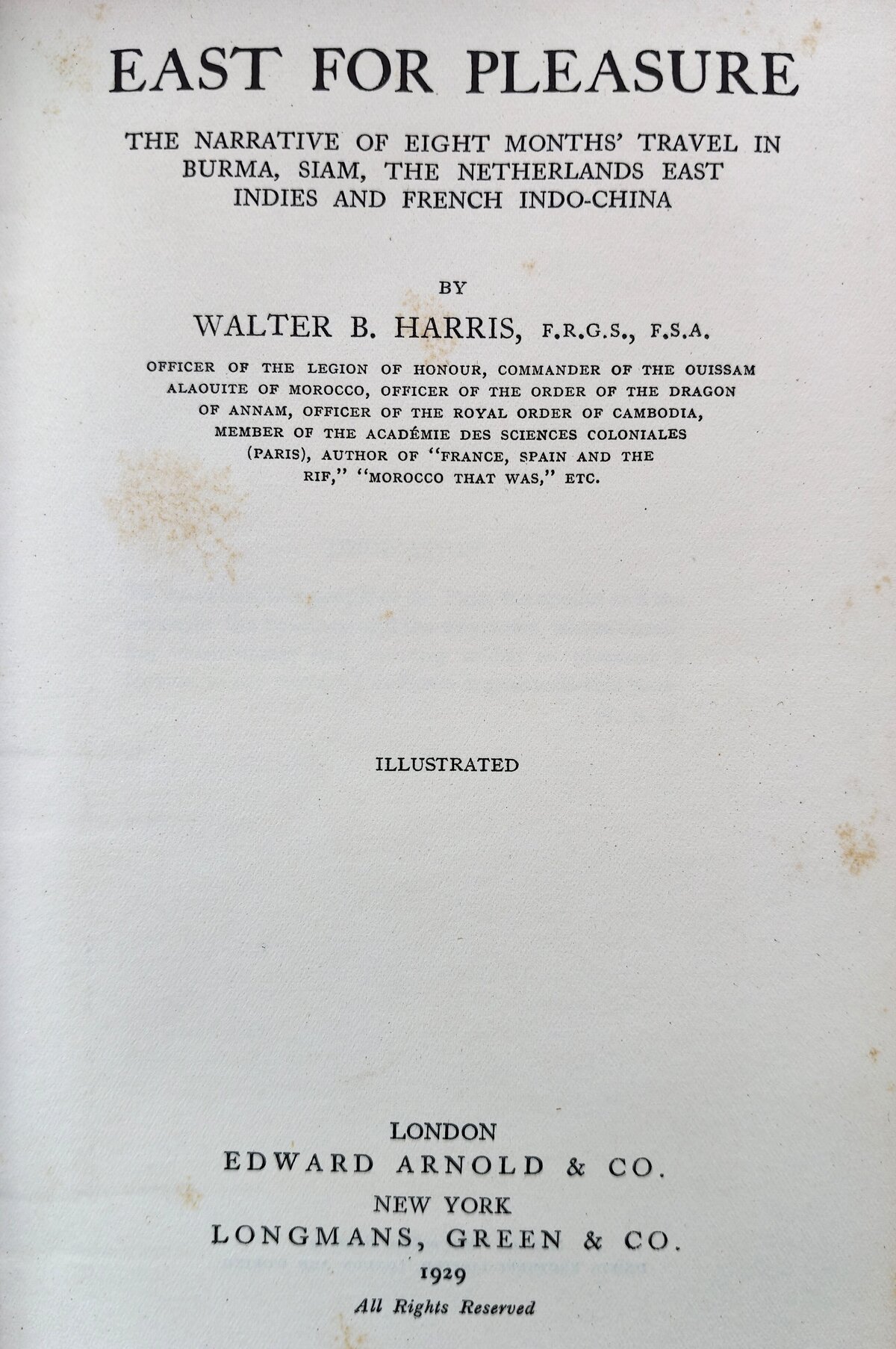 East for Pleasure: The Narrative of Eight Months' Travel in Burma, Sian, the Netherlands East Indies and French Indo-China