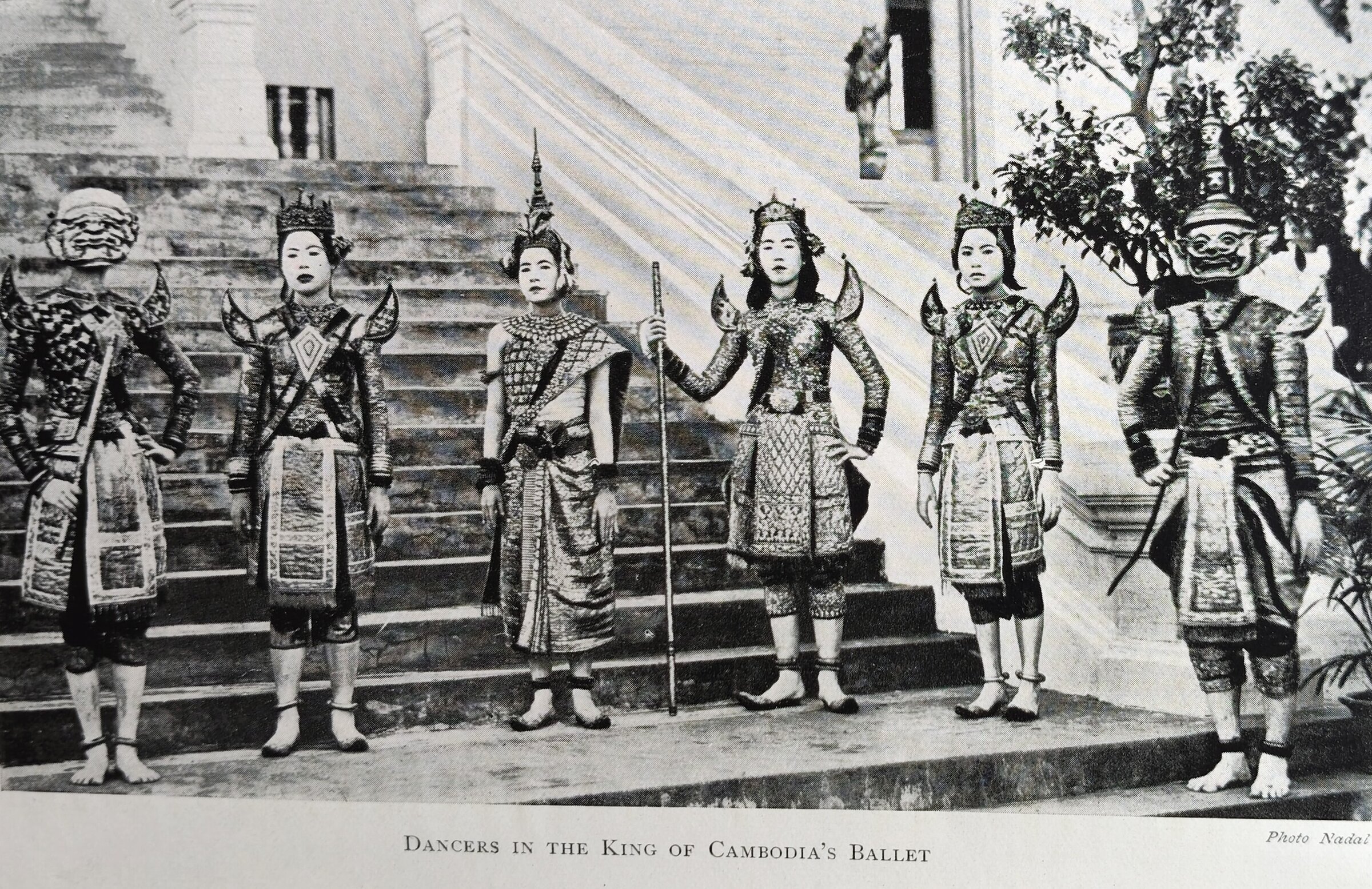[…] After dinner the King of Cambodia, with the King of Luang-Prabang and the guests, adjourned to “the Hall of Festivals” to attend a performance of the famous Cambodian ballet. His Majesty had lavished money on the renewal of the traditional costumes, and the little girl dancers shone and sparkled like a casket of jewels. How strange and yet how fascinating were their movements! Their faces, powdered dead white, remained stolidly expressionless, and it was only by the refined and delicate actions of their little bodies and of their limbs that the story of the play-ballet was maintained. The music tinkled, now fast, now slow, and with strange bendings and posings, with extended arms and hands bent back, with fingers alive with expression and deliberate steps full of meaning, the dance proceeded. With what delicate grace the small Prince made love to the little Princess! How fierce the gestures of the masked demons! How warlike the tread of the tiny soldiers!