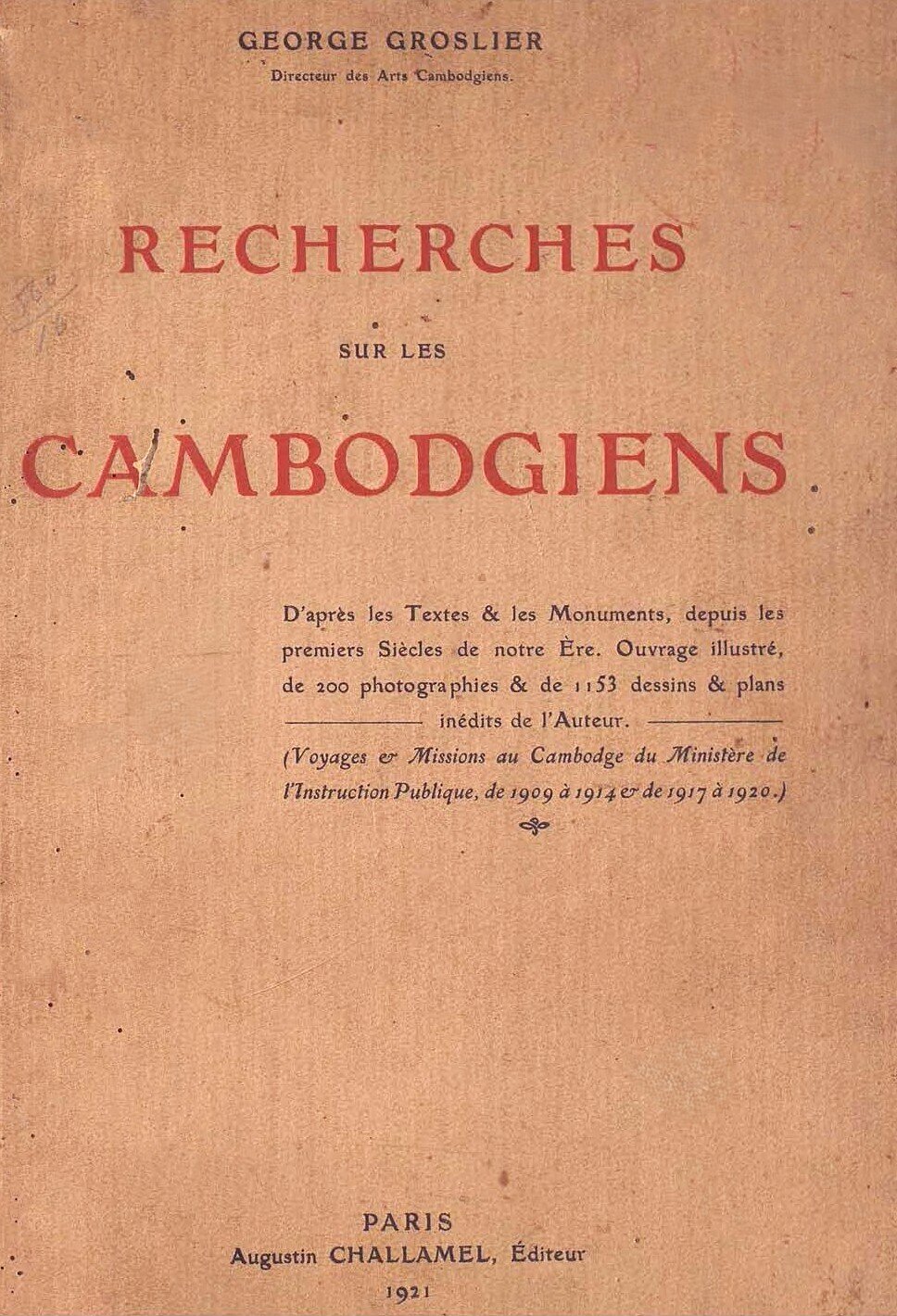 Based on “travels and missions in Cambodia from 1909 to 1914 and from 1917 to 1920”, this ambitious work was attempted as “an ethnographic portrait of the Khmer people”, past and present, but the author downsized the scope of his research and focussed on the Ancient Khmer civilization. Later on, he published an additional volume, Nouvelles recherches sur les Cambodgiens.