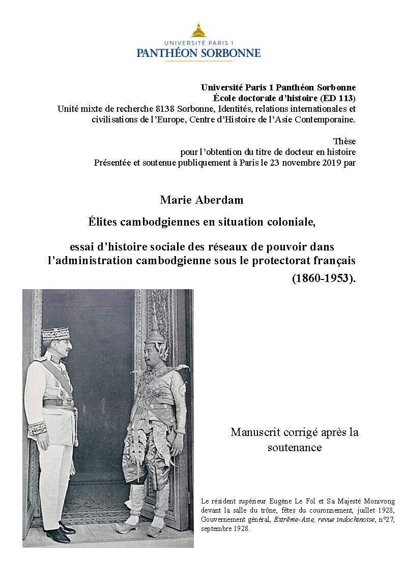 - Élites cambodgiennes en situation coloniale : essai d’histoire sociale des réseaux de pouvoir dans l’administration cambodgienne sous