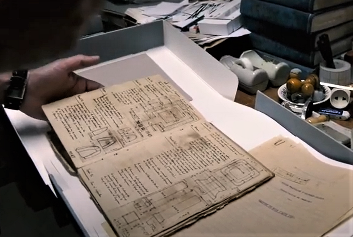 Photo: Some of Georges Trouvé’s excavation reports written down on the spot (capture from the film)