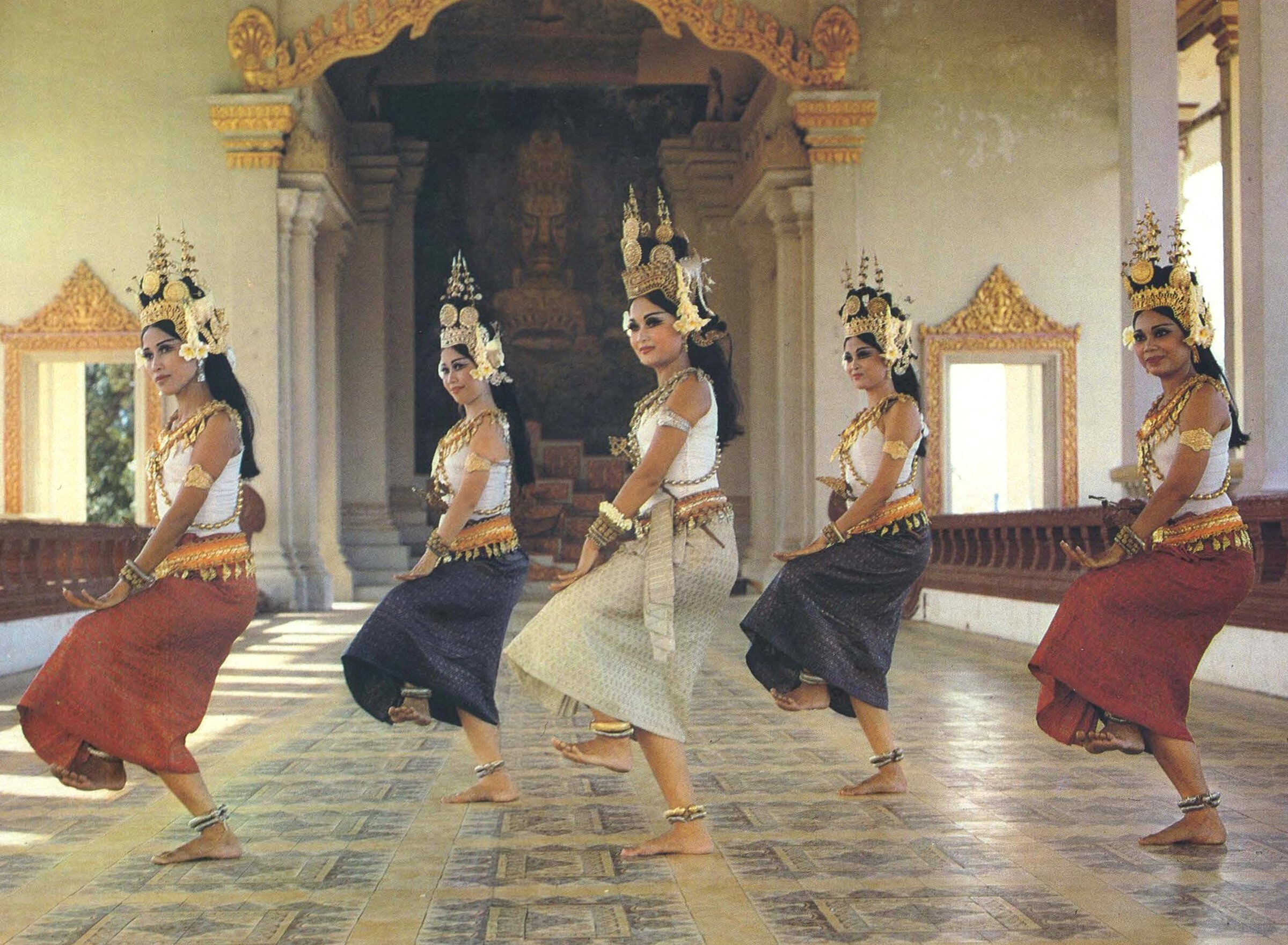 - “Rebirth of the Apsara”: learning again the ancestral motions (but the process would really pick up only after the return of Princess Buppha Devi in 1991). This rebirth includes the preservation of the artistic heritage, and we have here rare photographs of the National Museum of Phnom Penh shortly after its reopening.