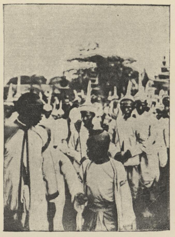 [Lacking the sensations of a sunny life, color and sound, which they are powerless to render, these reproductions will nevertheless be able to preserve for us the figure and general appearance of the characters who appeared in a celebration which, in a way, sanctioned the coming to manhood of one of the last sons of the old king of Cambodia: as such, they will not be out of place in the pages of the Bulletin de l’Ecole française d’Extrême-Orient (fig. 29 to 38). Despite some unfortunate intrusions of Western clothing or objects that the spectator easily ignored, we believed, while attending these solemn processions whose theories were developed amidst the deference of a whole people pressed in a tight crowd on their passage, to perceive a last and distant echo of the ages at once obscure and splendid of old Brahmanic India, and, closer to us, a light vision of the vanished era of which the ruins of Angkor remain as the most beautiful testimony of power and serenity.