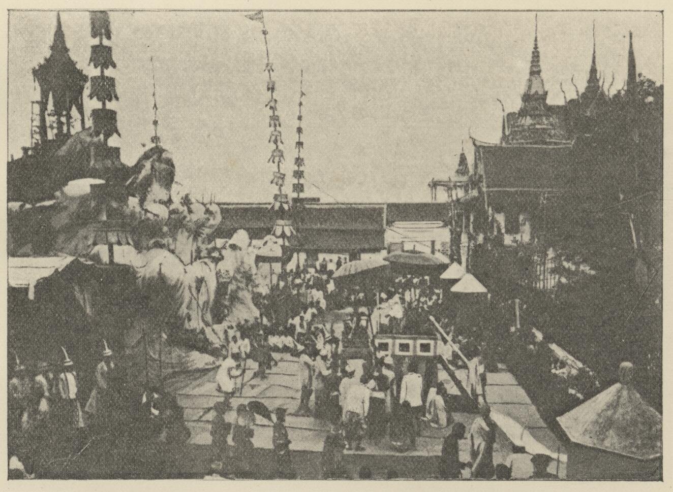 Presented in the order followed during the parades, we will find each subject accompanied by a short notice that we would have liked to be able to extend; but a simple stay of about eight months in Cambodia does not authorize us to risk hypotheses that are still poorly founded, or to advance in more detailed explanations on the customs and the origin of the traditions that have remained mysterious of a race as closed as that of the Khmers, whose current descendants are, so to speak, ignorant of themselves. It is thanks to the enlightened kindness of His Highness Prince Mayura [see below] that we will see here some details on the clothes, and their identification; it also seemed interesting to us to follow the names of the objects cited with the Cambodian term, whenever we were able to obtain it. Finally, we believe we are fulfilling a real duty towards those who would be interested in the Cambodian people by advising those who have not already done so to consult the remarkable work of Janneau on the language of the country; they will find there valuable information and developments on subjects barely touched upon in these few pages. H. Dufour