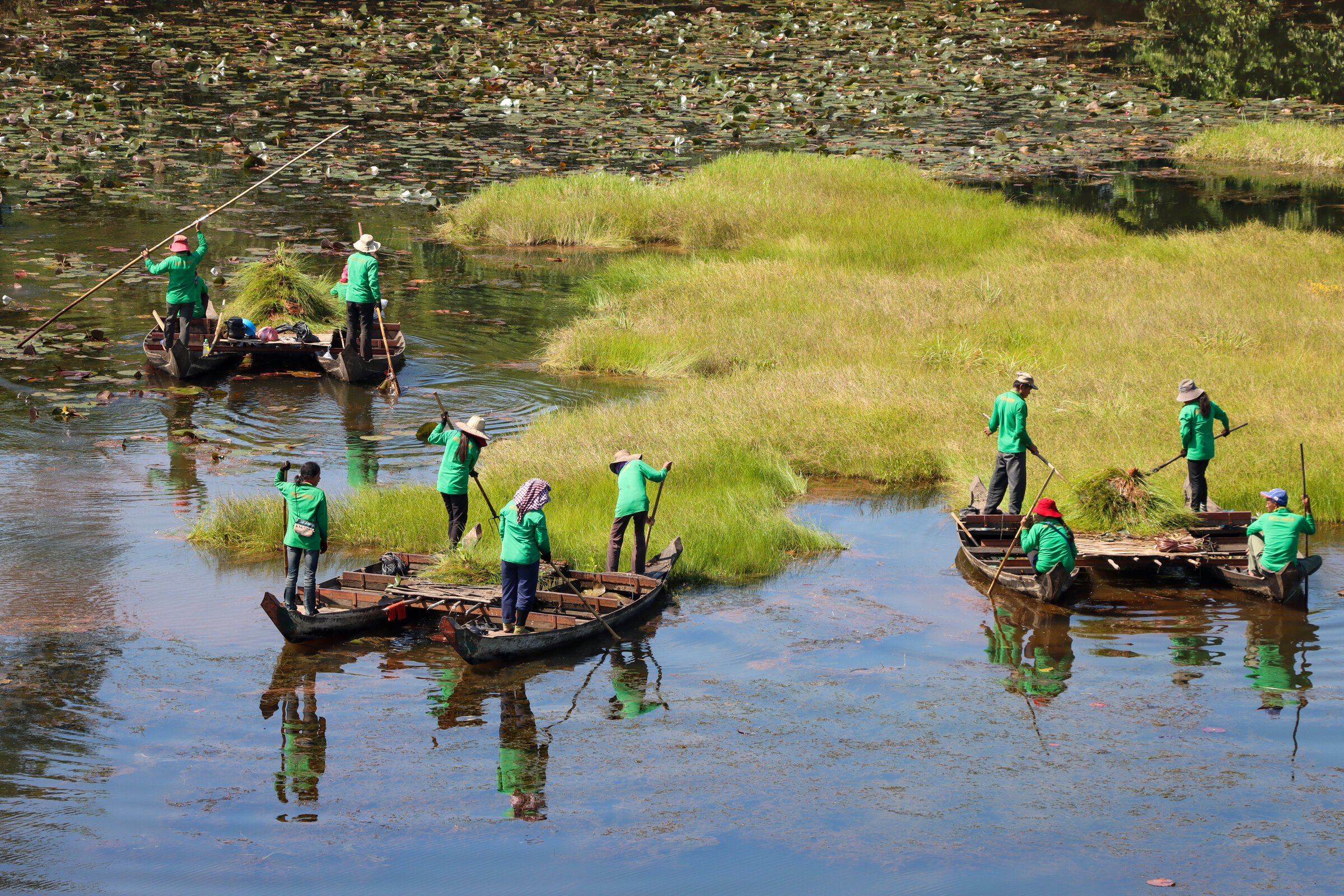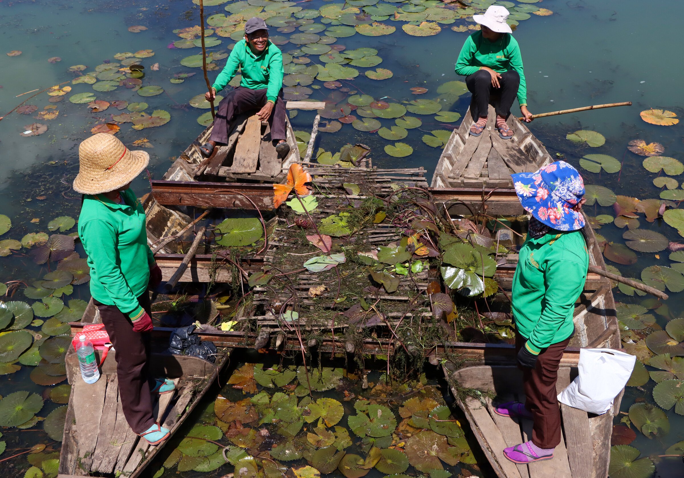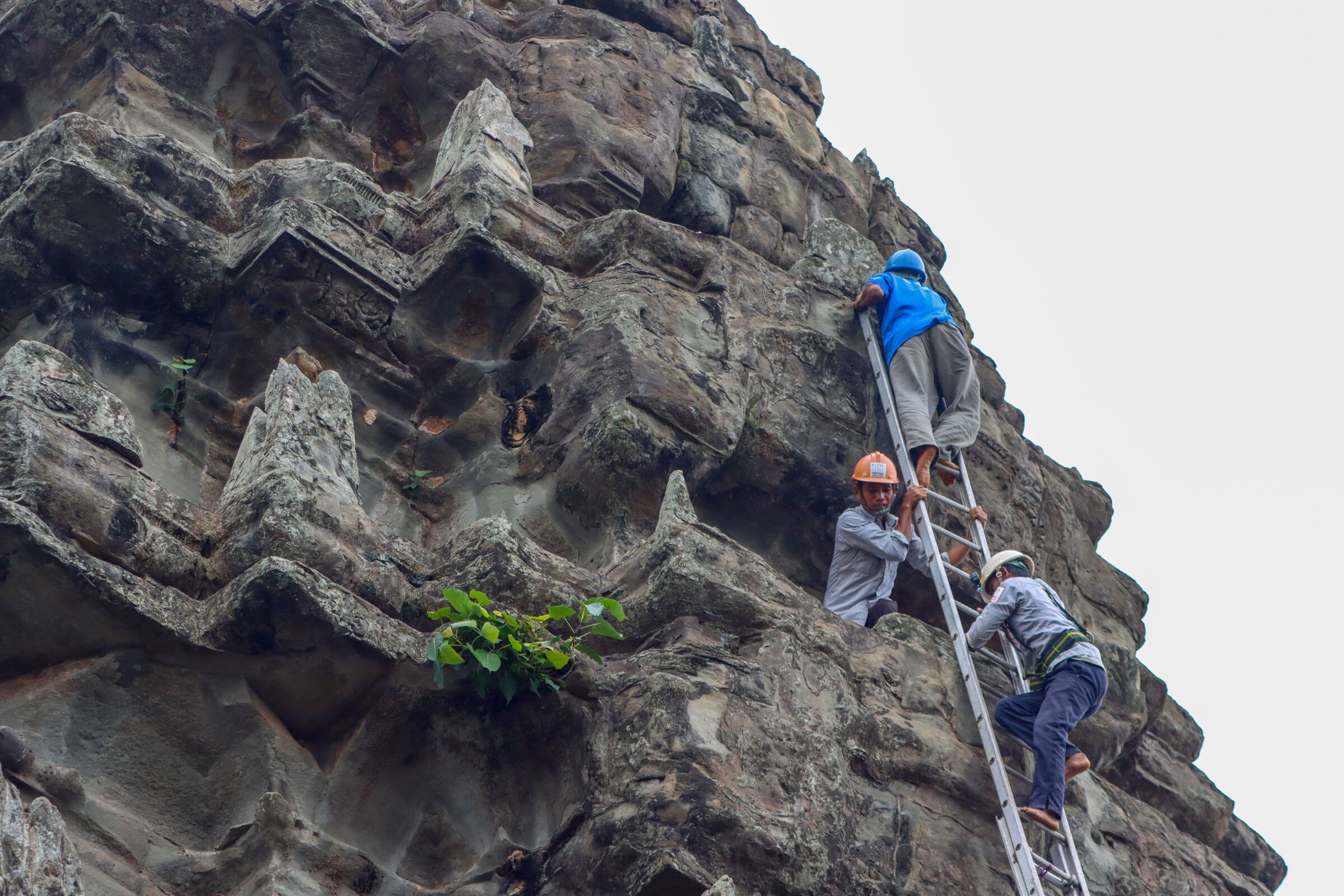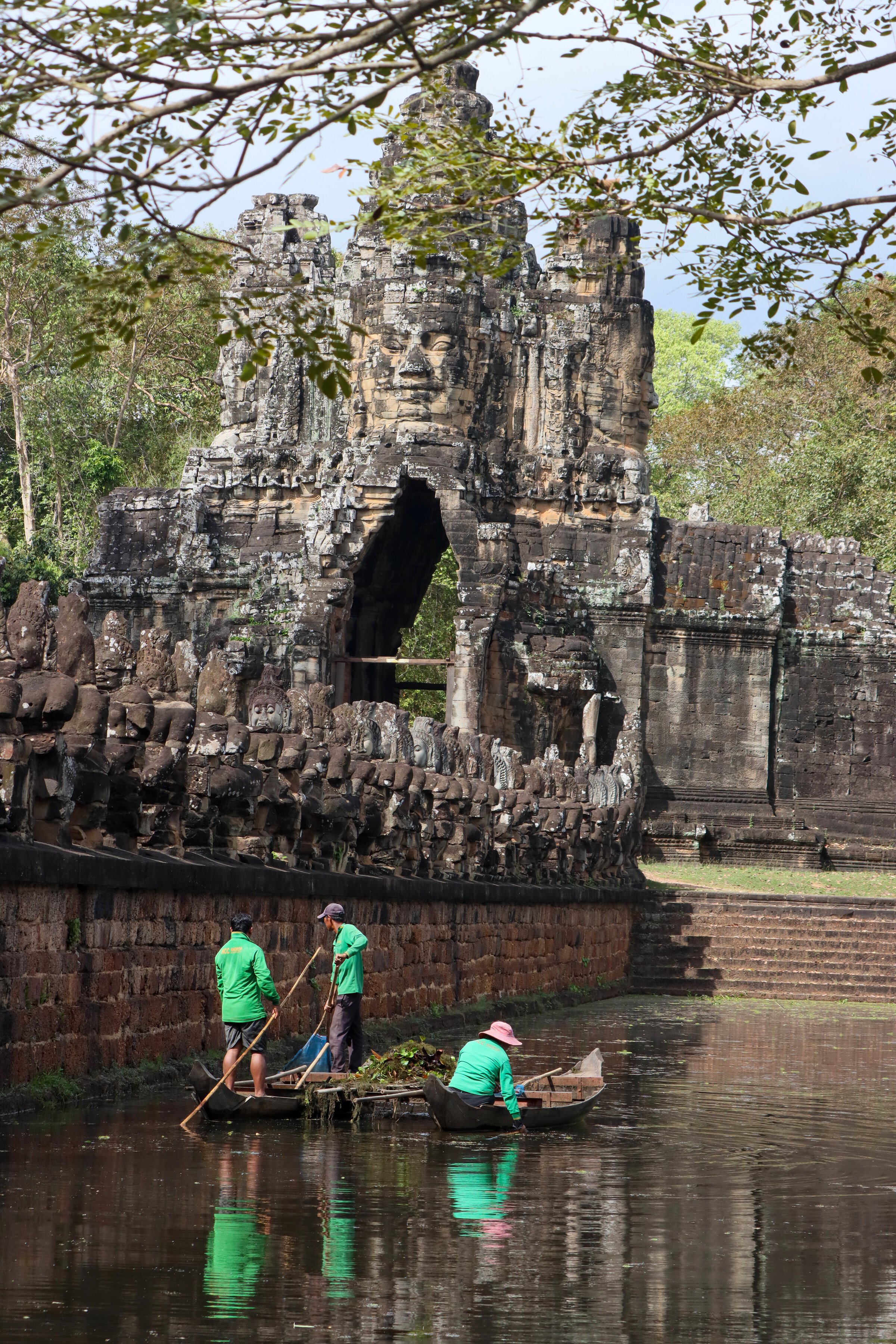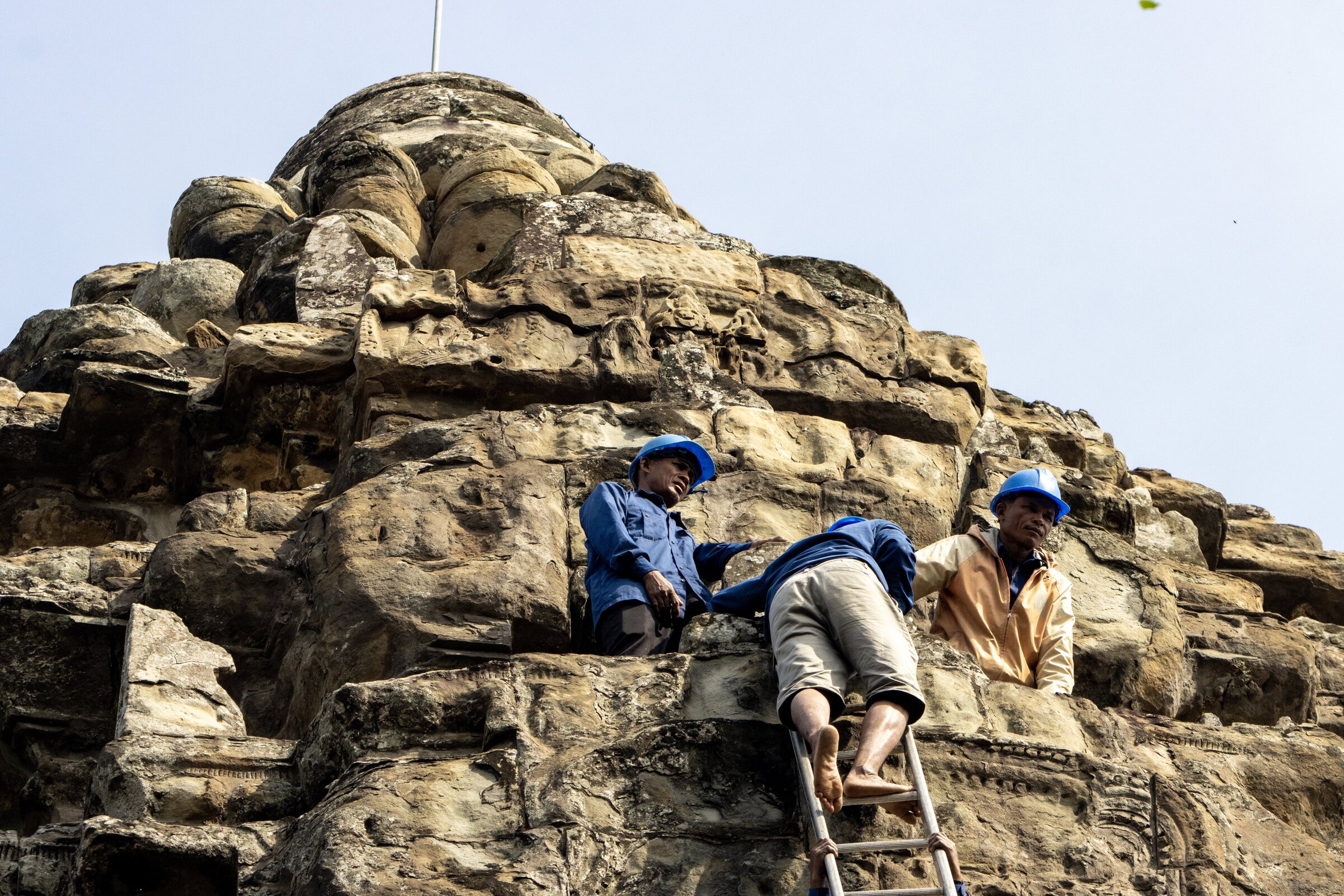 Across 400 square kilometers (about 154 square miles), the maintenance and preservations teams of APSARA Authority and, in the last decades, various service companies under contract, are each and every day at work to keep Nature at bay from hundreds of temples and monuments in a non-aggressive, eco-responsible way. Photographer Lim Bunhong has documented this effort for over two years, from acrobatic prowess when reaching the upper structures to the humble yet essential task of keeping the numerous bodies of water clear of invasive vegetation.