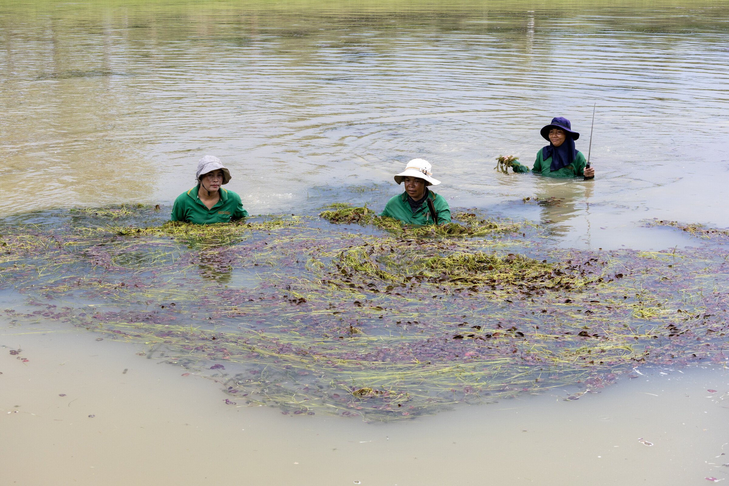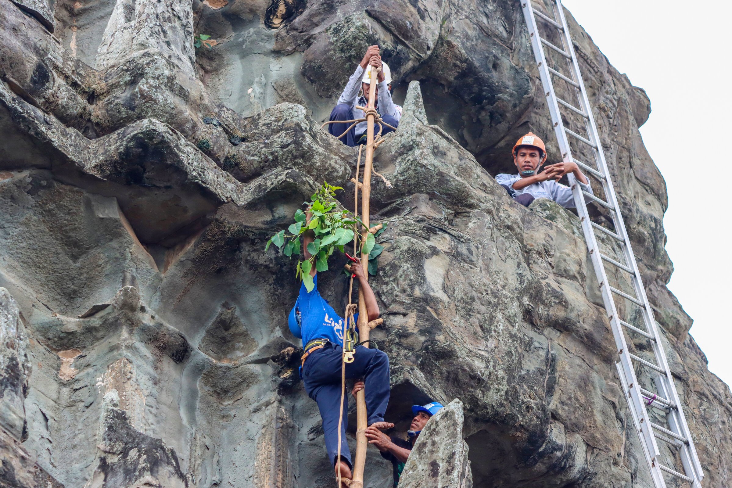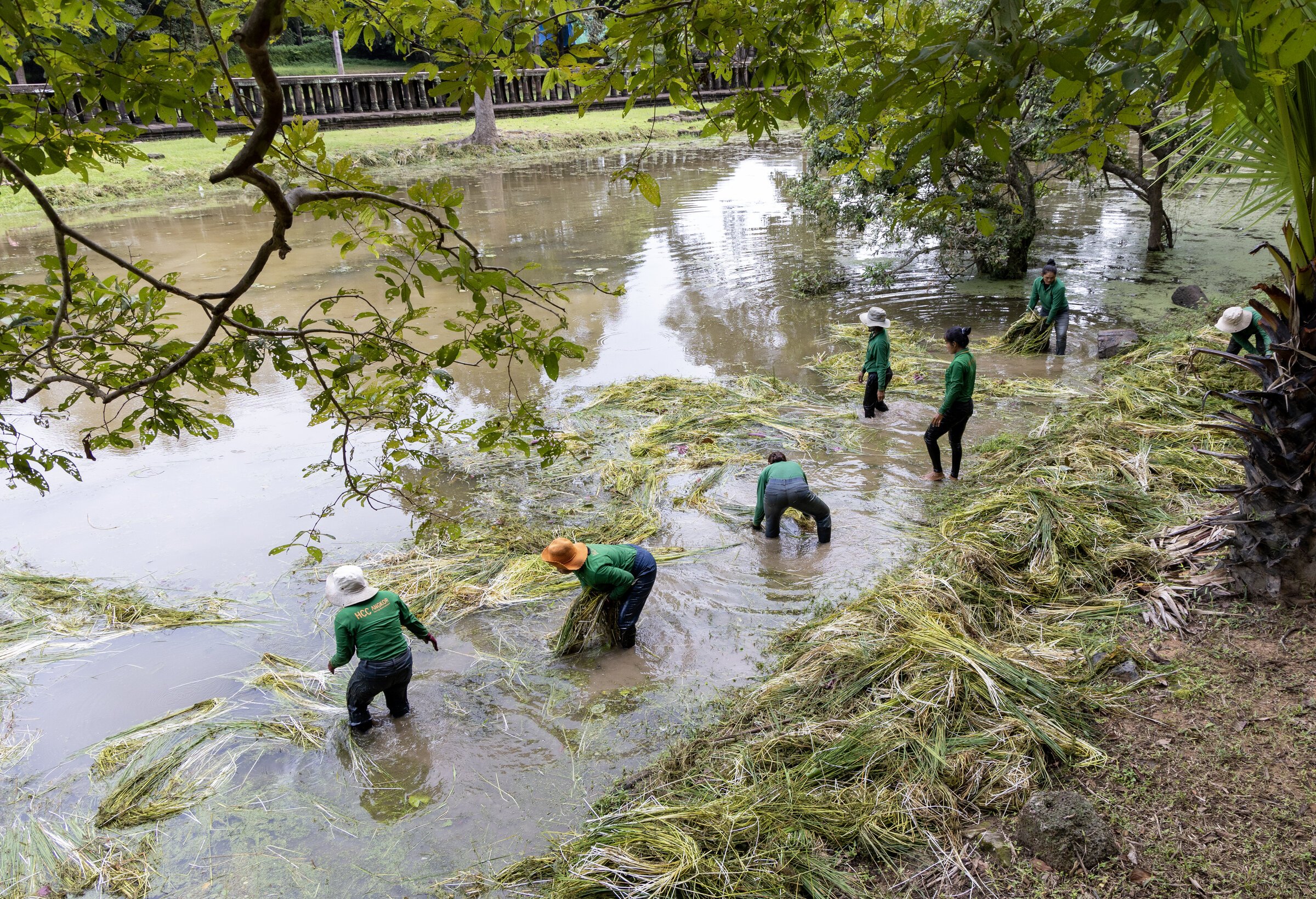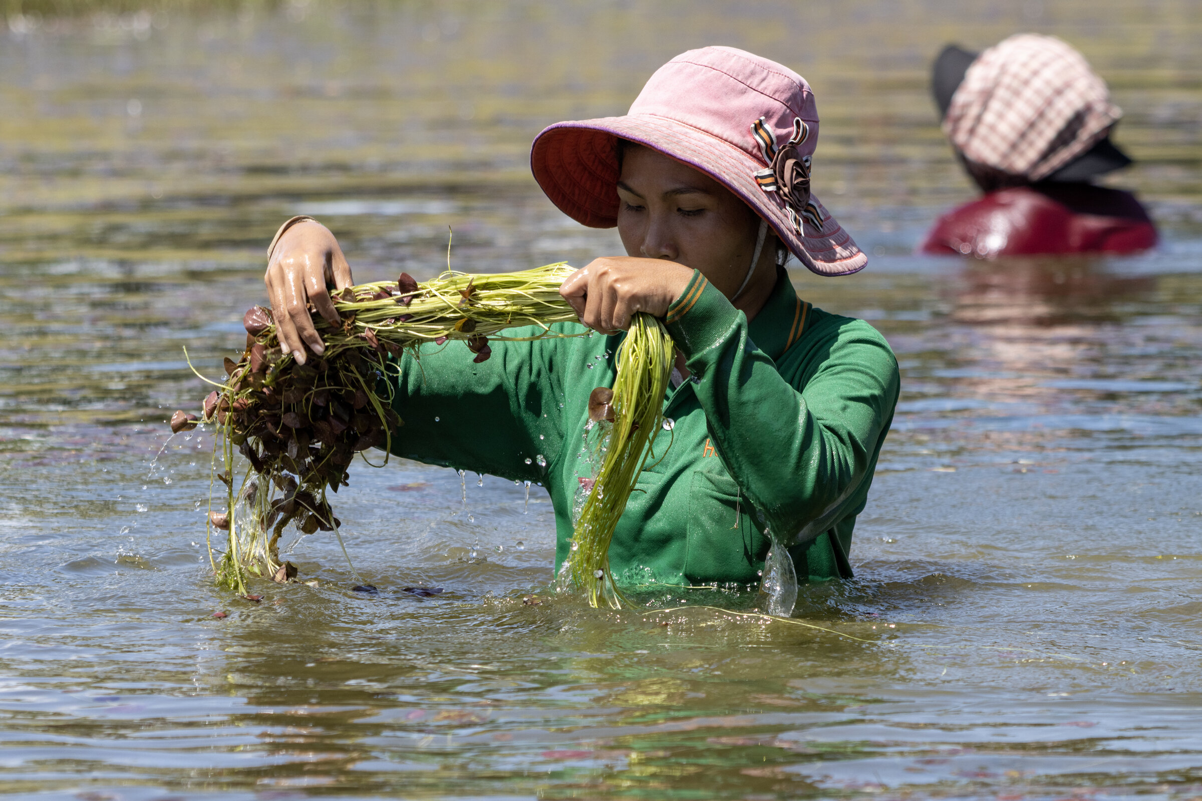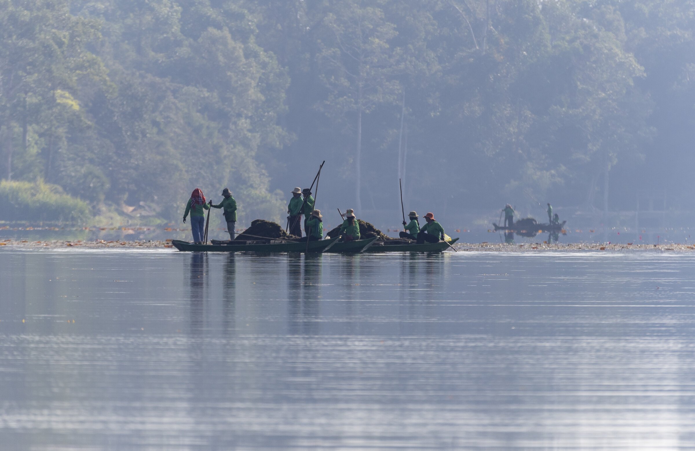 Across 400 square kilometers (about 154 square miles), the maintenance and preservations teams of APSARA Authority and, in the last decades, various service companies under contract, are each and every day at work to keep Nature at bay from hundreds of temples and monuments in a non-aggressive, eco-responsible way. Photographer Lim Bunhong has documented this effort for over two years, from acrobatic prowess when reaching the upper structures to the humble yet essential task of keeping the numerous bodies of water clear of invasive vegetation.