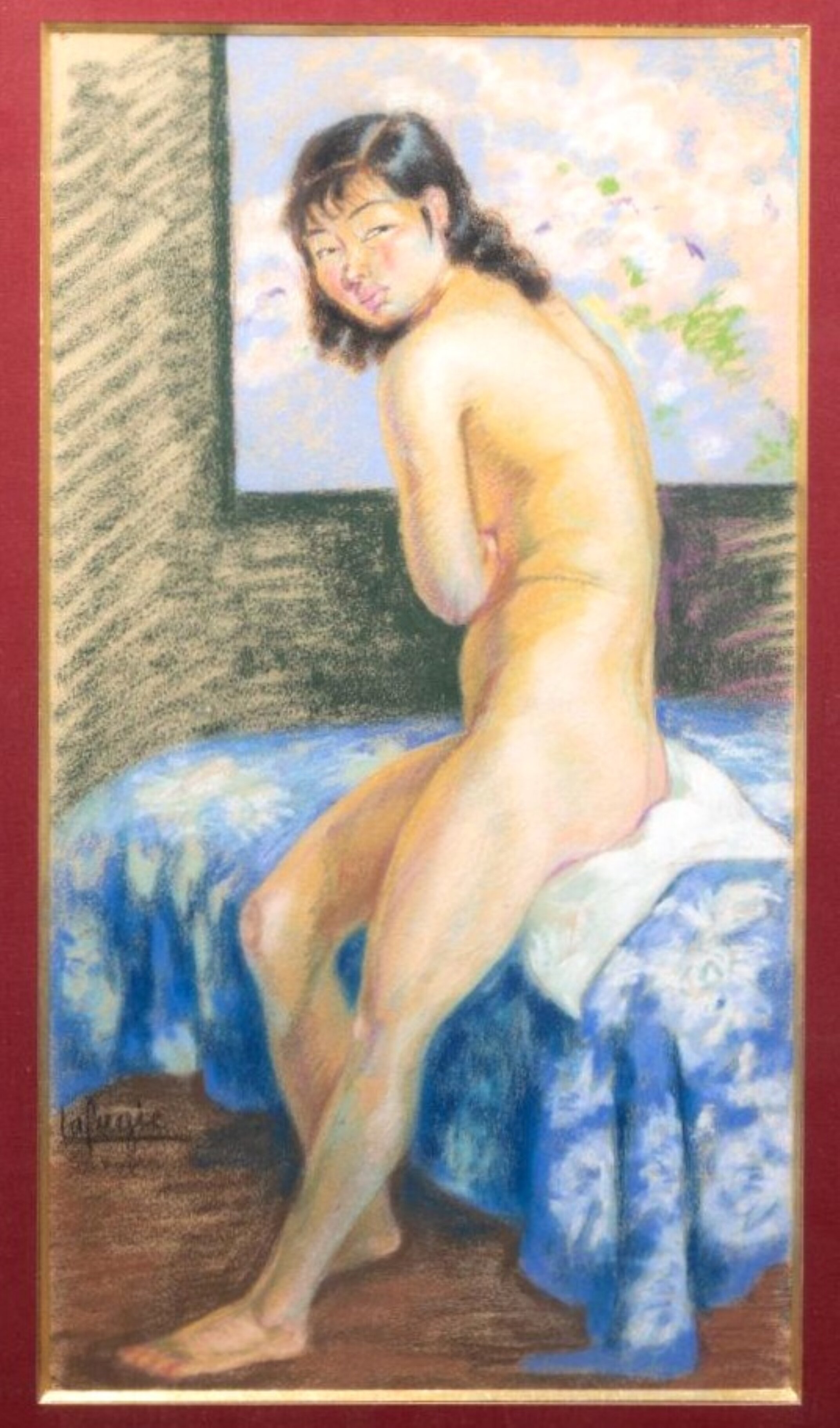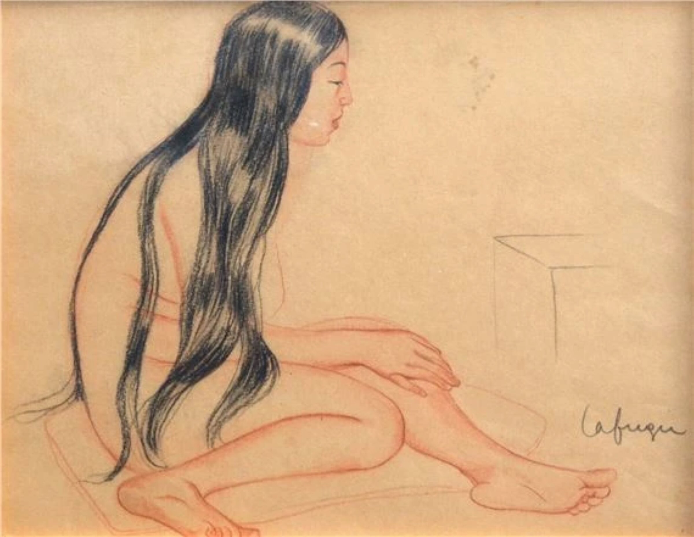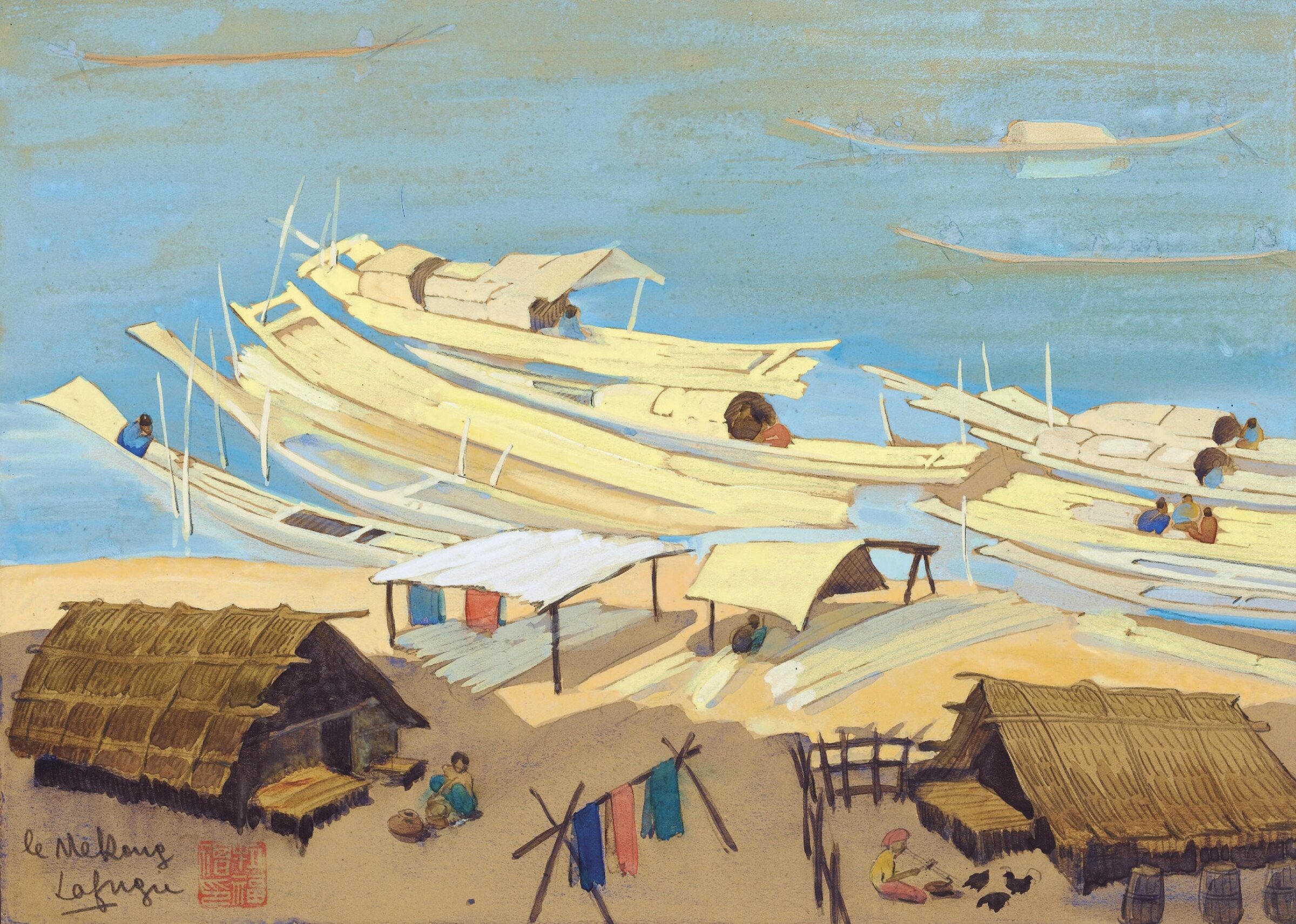 After Lafugie’s death, her vast body of work has been dispersed through various private collections, reappearing only during auctions. It was only in 2012 – 2013 that four of her drawings and watercolors were exhibited at the Cernuschi Museum in Paris (“Du Fleuve Rouge au Mékong”). Ten years later, her legacy was celebrated at the group exhibition “Artistes voyageuses: L’appel des lointains 1880 – 1944” (11 Dec. 2022 – 5 Nov. 2023, Palais Lumière, Evian, and Pont-Aven Museum, France [catalog ed. by Arielle Pélenc in collaboration with Marion Lagrange, including an essay on Lafugie by Sandrine Dapsens].