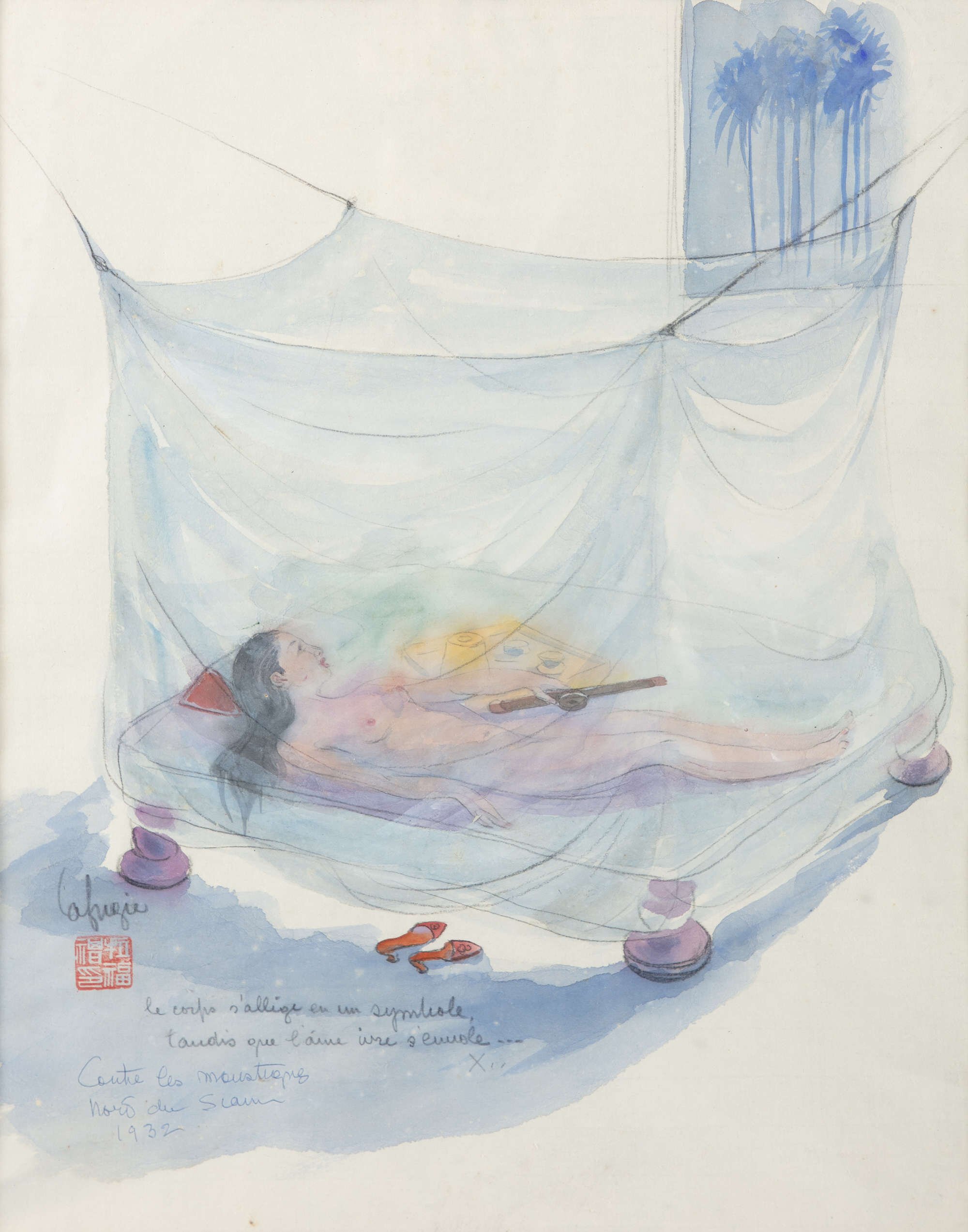LL-OP-3, "Le corps s'allège en un symbole/Tandis que l'âme ivre s'envole...Contre les moustiques, Nord du Siam" ["The body eases up in a symbol...Fighting the mosquitoes," North of Siam], 1932