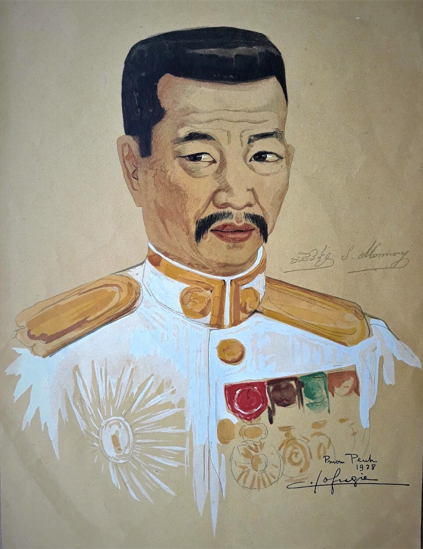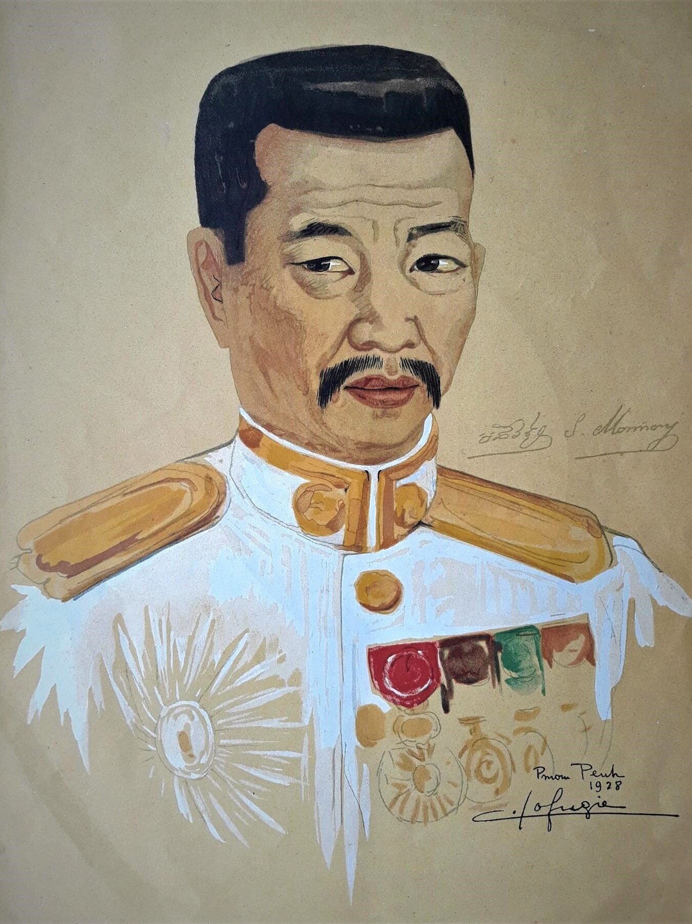 Art vs Academism:1) Portrait of HM King Sisowath Monivong by Léa Lafugie, 1928. 2) A portrait of the King c. 1933 by Charles Mascré-Souville, a French official portraitist who painted the Gotha of French colonialism at the time, from Admiral de La Grandière to Paul Bert, Albert Sarraut and Charles Le Myre de Vilers.