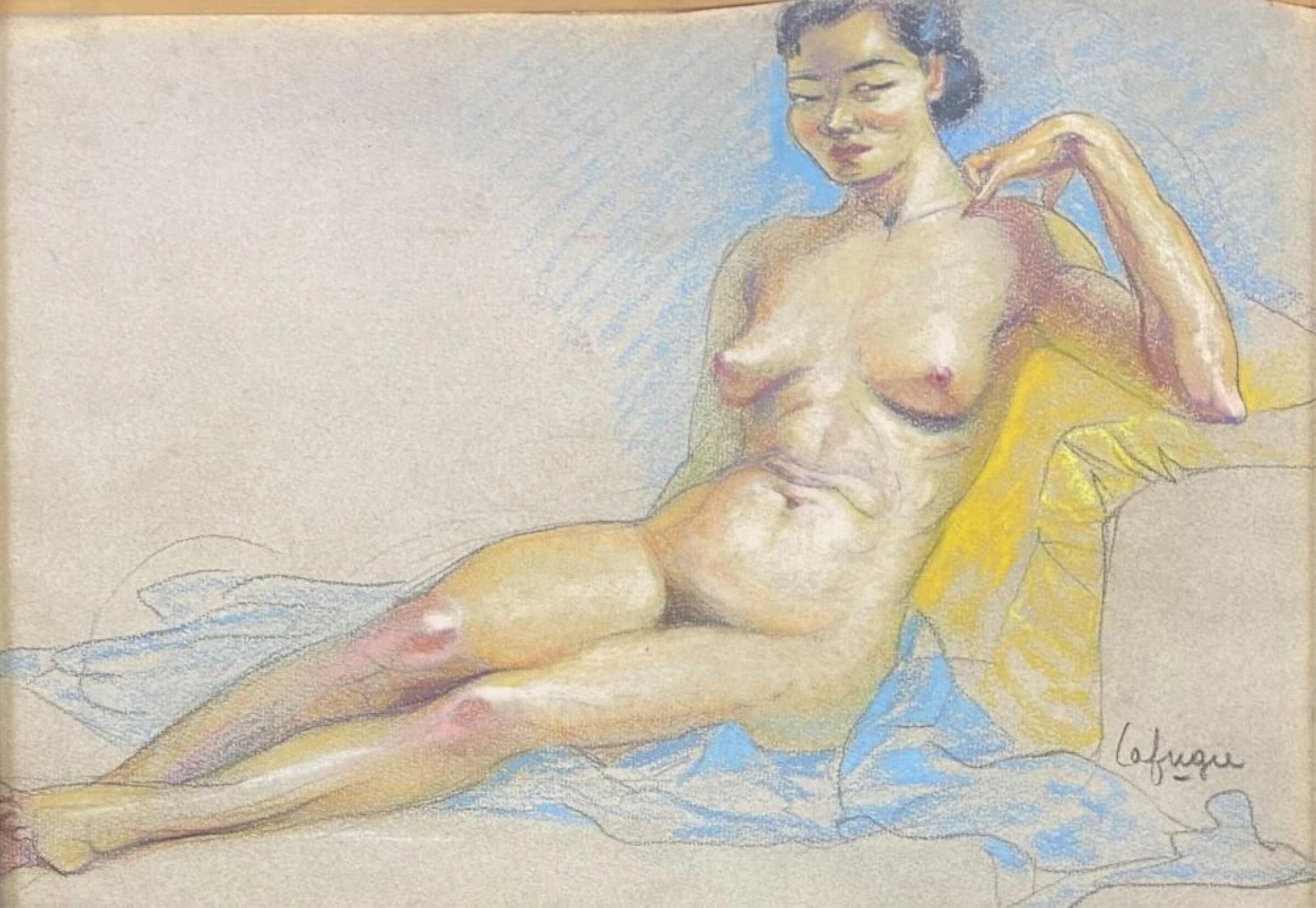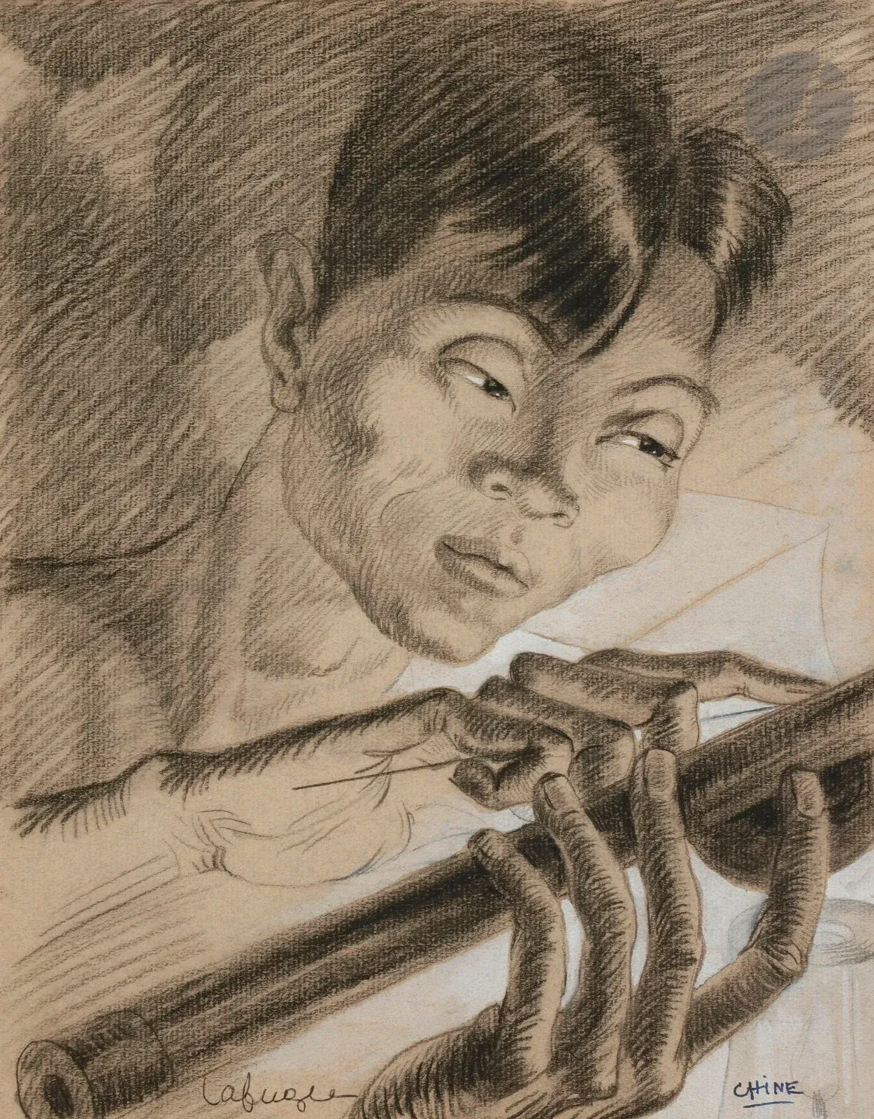 Equally unconventional was her treatment of opium use, still very much an issue in China and Southeast Asia at the time. When masters of French colonial literature displayed a somewhat morbid and voyeuristic fascination for this artificial paradise of the Orient, she painted opium smoking scenes in delicate pastels, describing in precise comments the effects on the user — to the point one can surmise she gave it a try -, and showing on harsh pencil portraits of emaciated, haggard faces, its consequences. And she depicted female users, which was then quite taboo. Then again, women have always been center stage in Léa Lafugie’s artistic vision of Asia.
