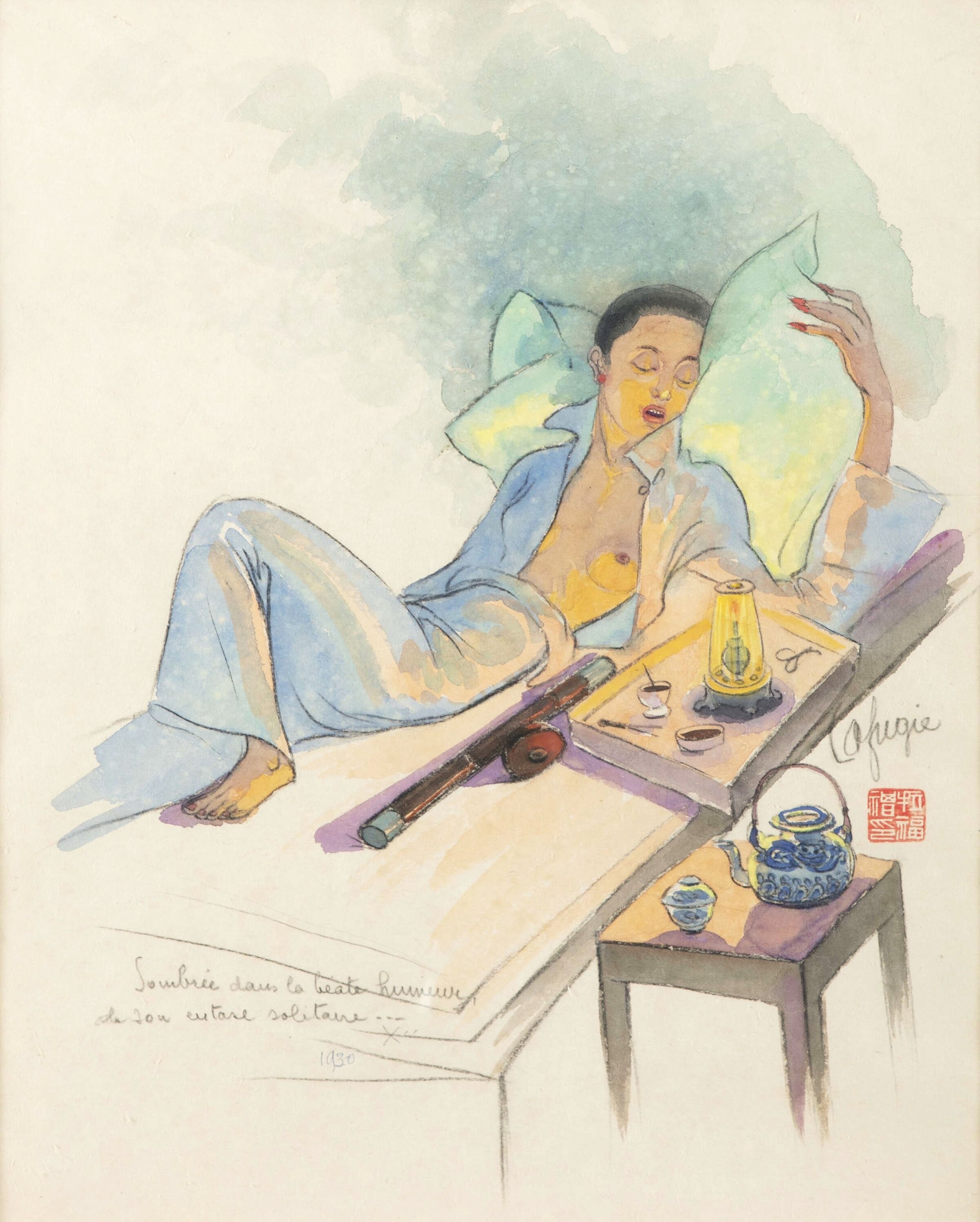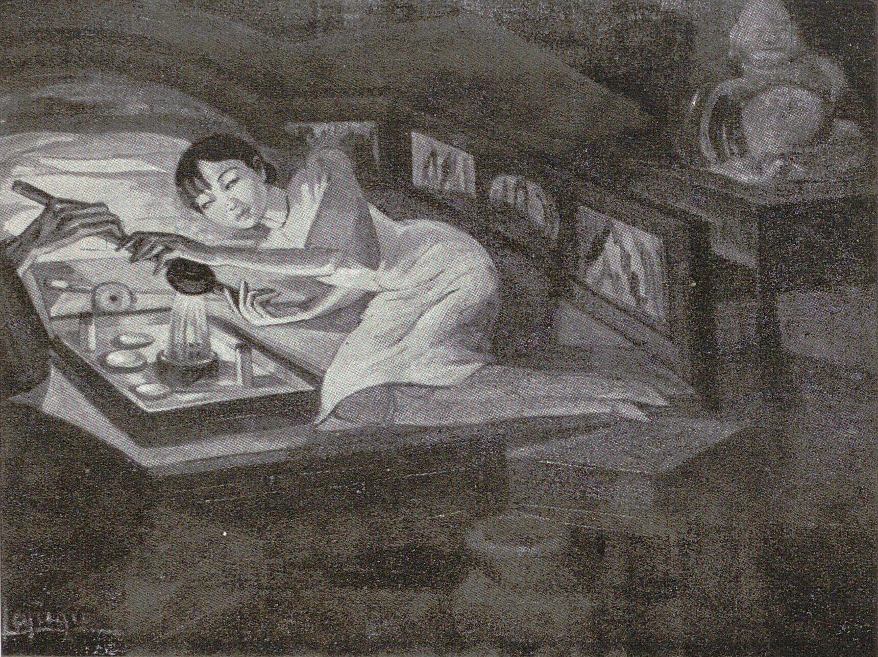 LL-OP-1, "Jeune femme avec pipe d'opium et bougie" [Young Woman with opium pipe and candle], 1927.