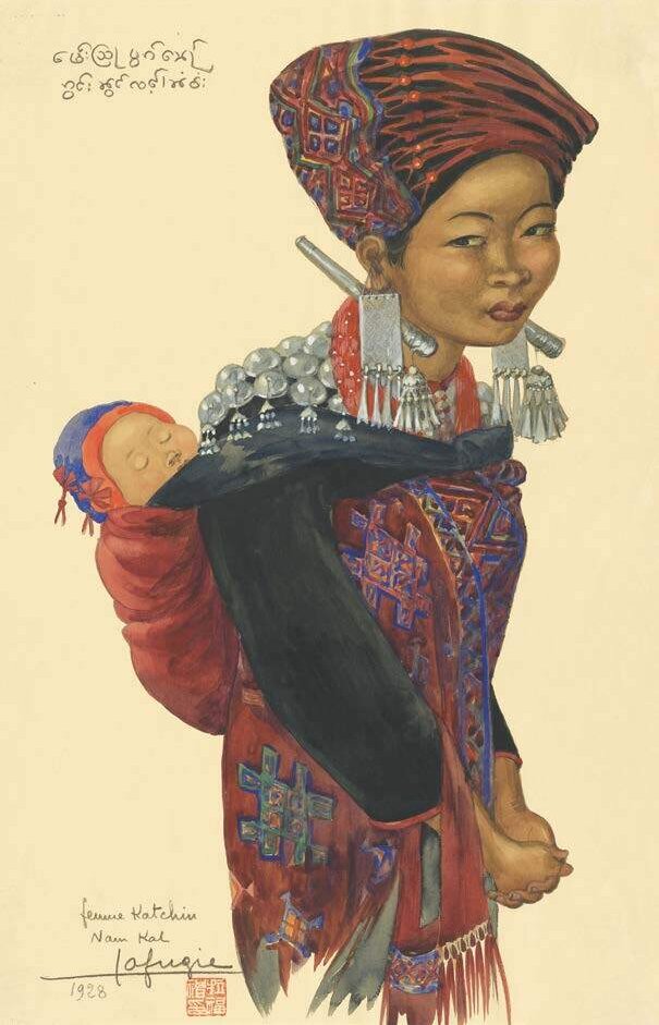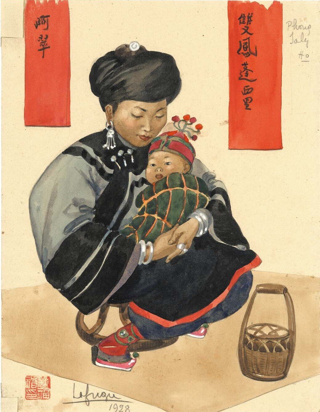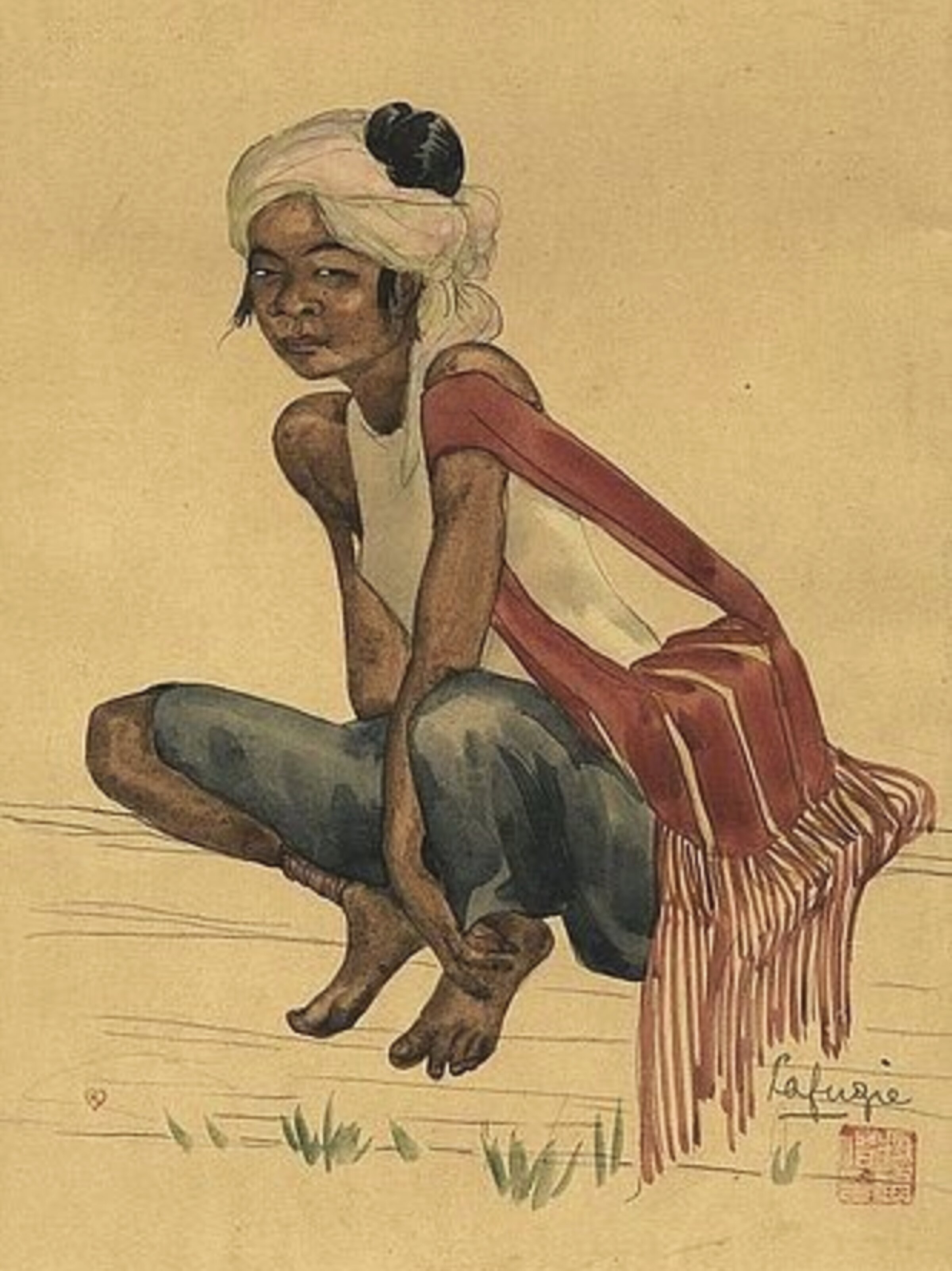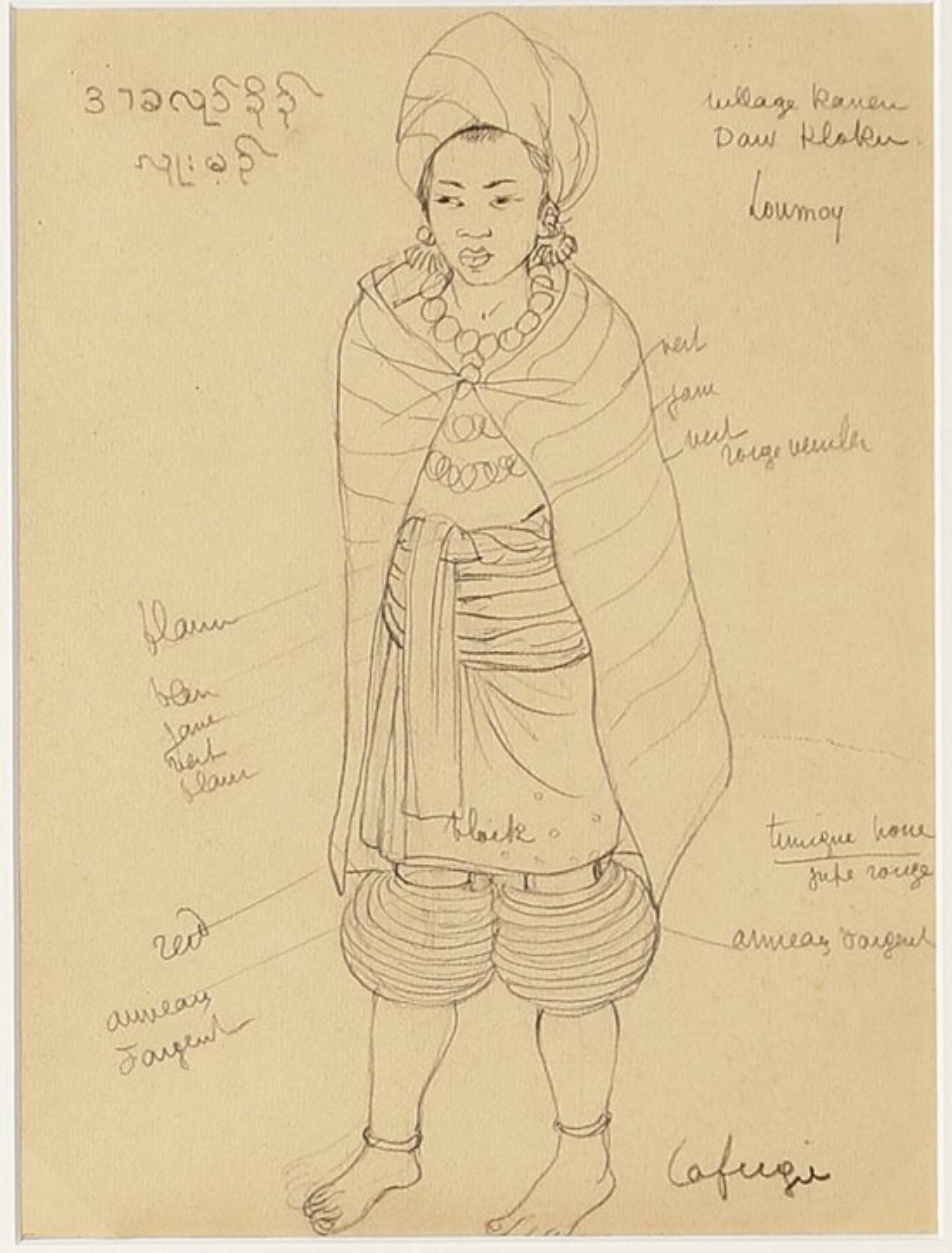 Léa Lafugie traveled across South China and mainland and maritime Southeast Asia at a time ethnography (or ethnology) as a scientific discipline was still in infancy. Bronisław Malinowski had published Argonauts of the Western Pacific in 1922, Margared Mead her Coming of Age in Samoa in 1928, and E. E. Evans-Pritchard would issue The Nuer in 1940. Nevertheless, her indications on drawings and paintings remain precious pieces of information on the minority mosaic spreading from Burma (Myanmar) to Cambodian and Vietnamese highlands, onto the Malay and Indonesian archipelagos.