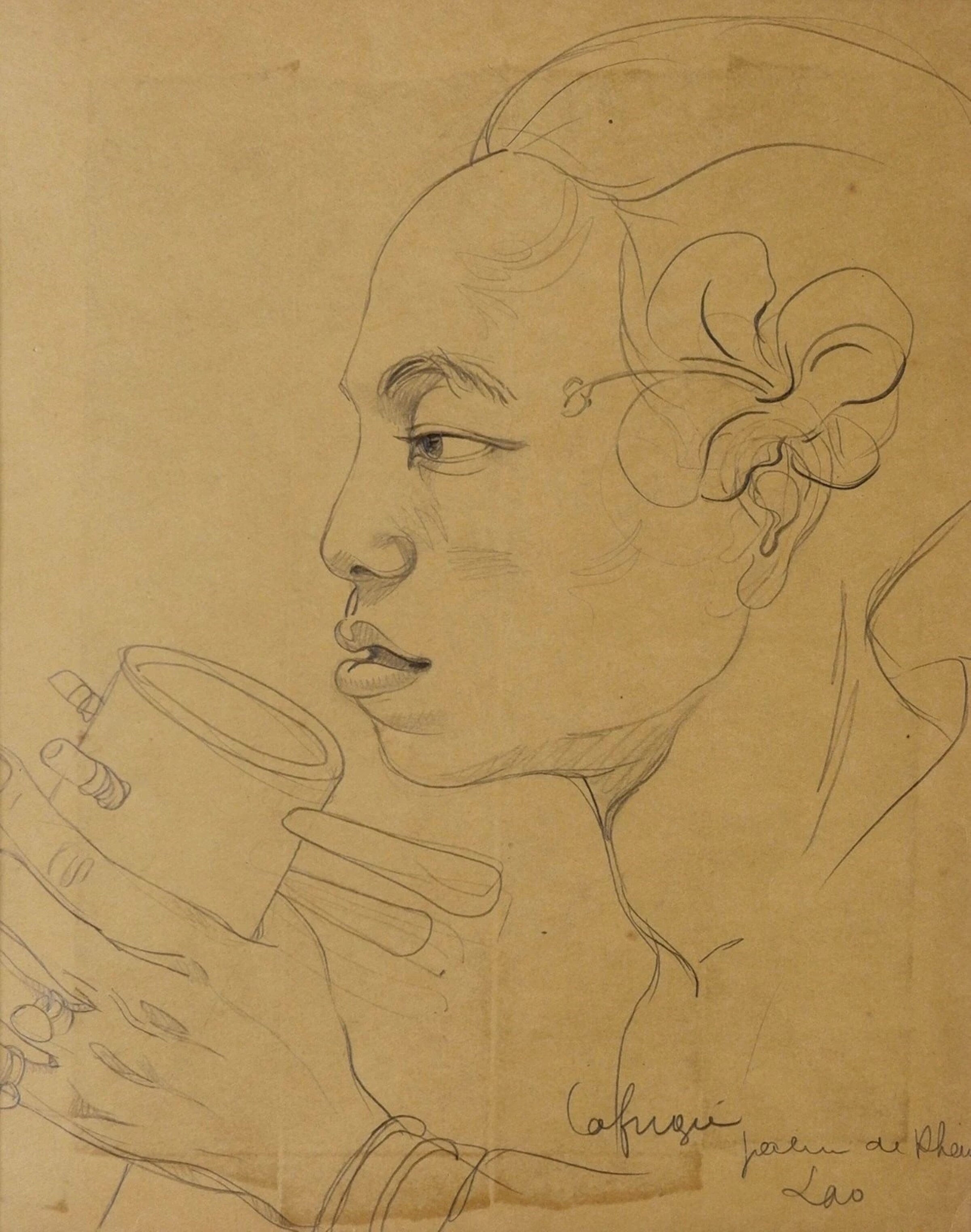 In 1928 – 1929, she explored successively Shanghai, Burma (now Myanmar), Siam (Thailand), Laos, Cambodia, Vietnam, Indonesia, Malaysia. In 1932, back from France for her largest solo exhibition (‘Five Years of Expeditions in Asia’, Galerie Pleyel, 1930), she married in Paris Claude-Prosper-André Decamps, a forestry expert she had met in French Indochina. All the way, she “managed to alternate long periods of solitary exploration in territories where no European had penetrated and luxurious stays in local aristocratic families or Western diplomatic circles, with the “policy” of being accepted everywhere by offering their portrait to her hosts, seized with curiosity and enchanted by her artistic talent as well as by her open-mindedness and her understanding of situations,” according to her profile on Far Orientalism.