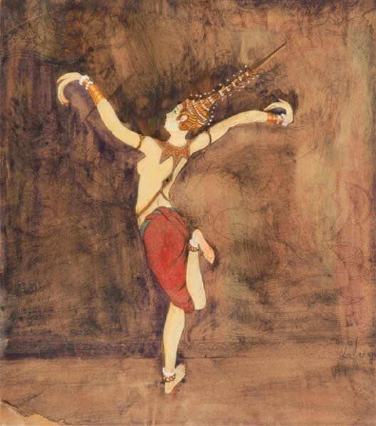 Ith, already a noted artist during the reign of King Sisowath and had been remarked by the French media at the 1922 Colonial Exhibition in 1922, was then the first dancer and consistently appeared in George Groslier’s documenting work on the Royal Ballet in 1927. Ith’s portrait by Lafugie, along with King Monivong’s, were reproduced in Alfred Meynard’s printed report on King Monivong’s coronation ceremonies, where the prolix journalist composed an ode to the unnamed Ith and to the dancers’ feet: