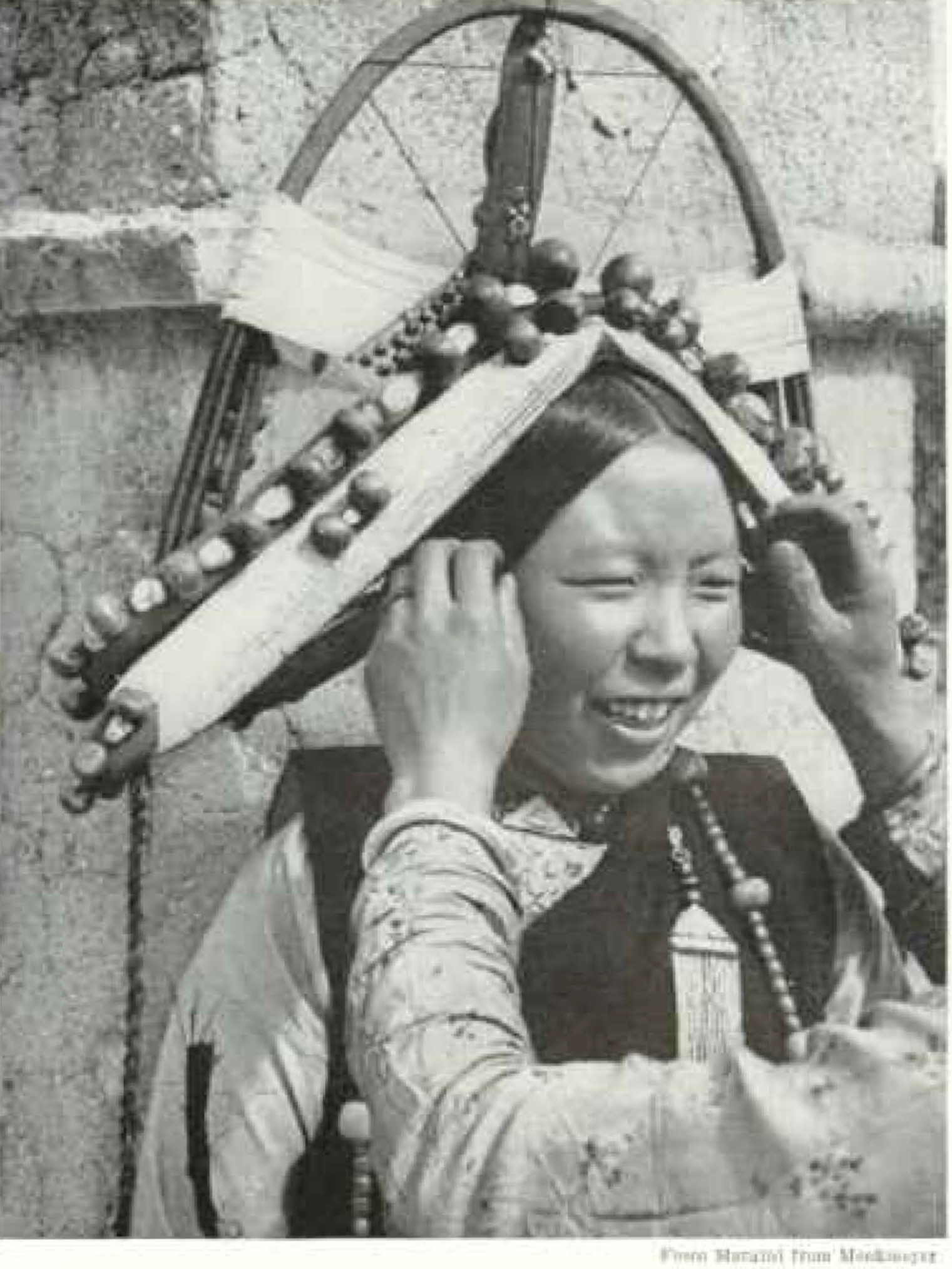 Léa Lafugie sporting a traditional Tibetan outfit in Gyangtse, 1928 [photo by Lafugie, National Geographic5, 1949]