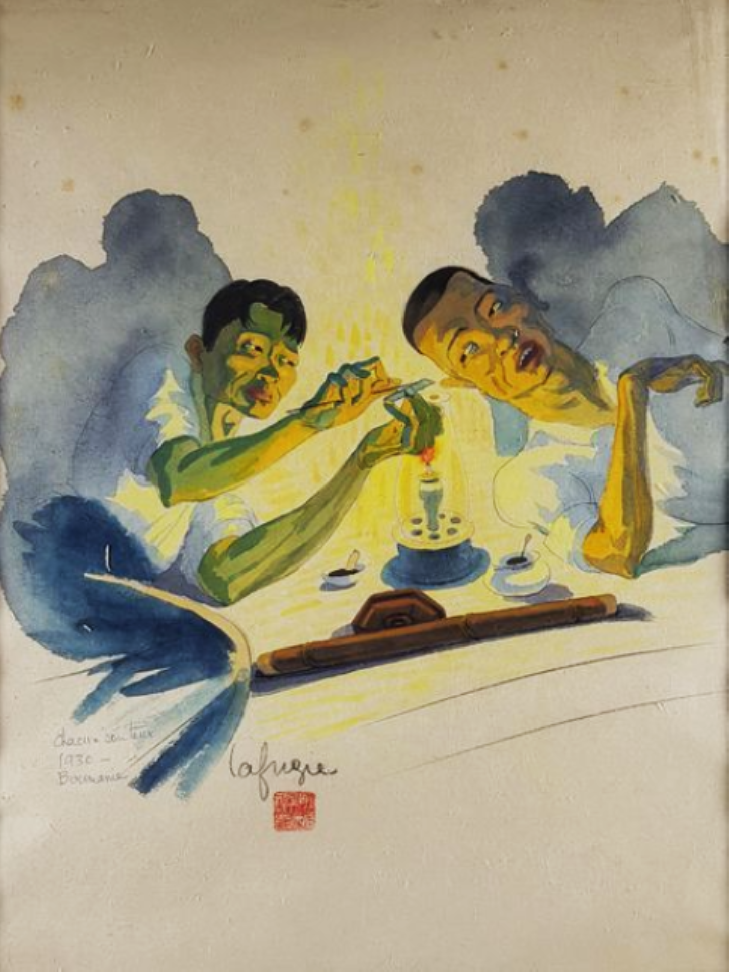 LL-OP-6, "La goutte d'opium commence a grésiller..." ["The opium drops starts sizzling...]