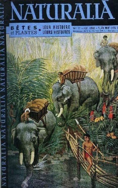 LL-Elephants, Cover illustration for Naturalia, n. 77, Feb. 1960, with a feature on elephants in Asia by L.L.