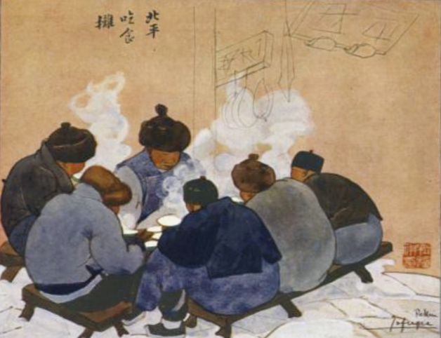 LL_CH-10, 'Déjeuner de coolies dans la rue sous la neige', Peking, c.1931 [Coolies' lunch on a snowed street]