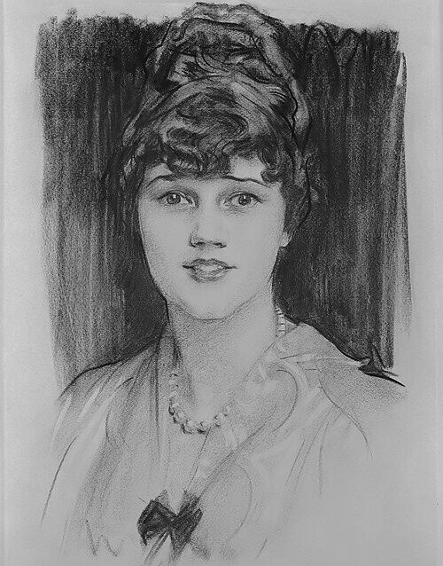 1) Cover of the 1930 catalog. 2) Constance Crowninshield Coolidge (1892−1973), comtesse de Jumilhac, black chalk on paper signed John S. Sargent, 1915.