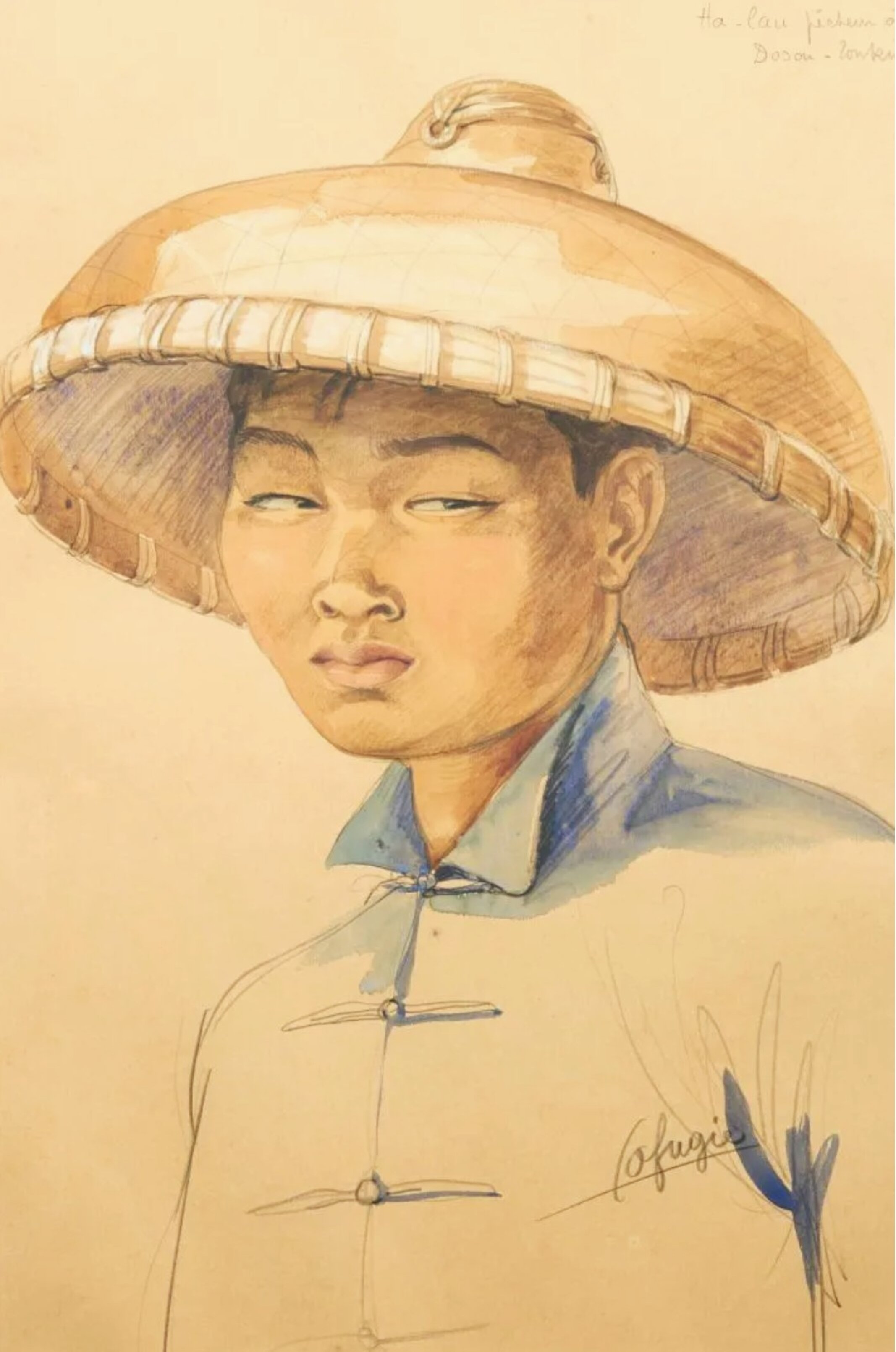LL-V-18, <p>'Ha-Lau, pêcheur à Doson -Tonkin" ['Ha-Lau, fisherman at Doson (Tonkin)], watercolor and pencil on paper, c. 1926. </p>