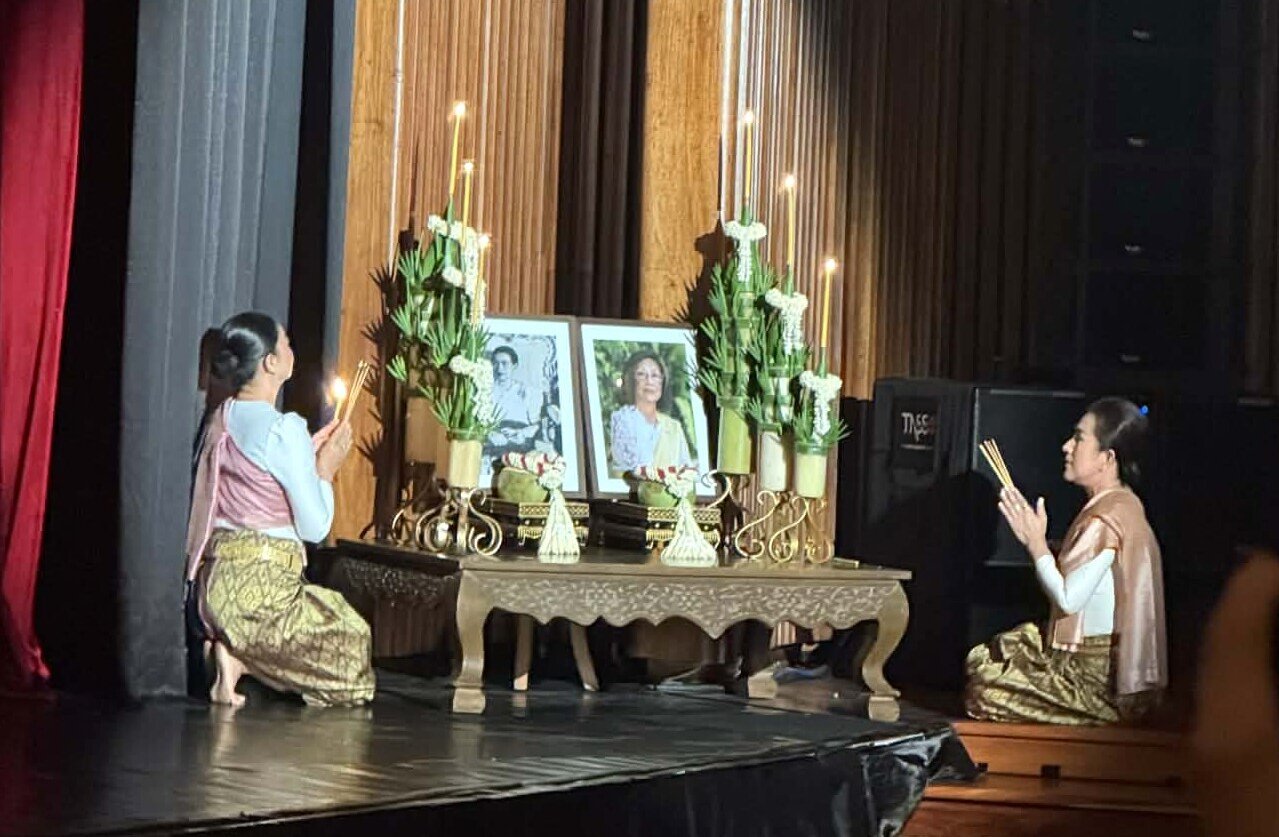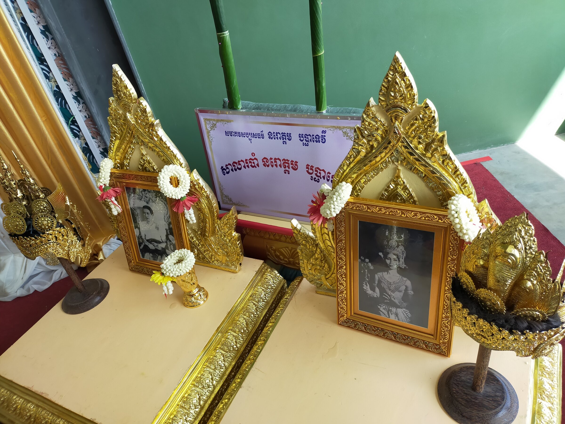 Sampeah Kru សំពះគ្រូ at Chaktomuk Theater, March 2026 (1), and at Princess Buppha Devi Dance School, Nov. 2022 (2). Both the Royal Ballet associated to Royal University of Fine Arts (RUFA) and the school established by HRH Prince Sisowath Tesso honor the memory of Queen Kossamak and Princess Buppha Devi before rehearsals and performances.